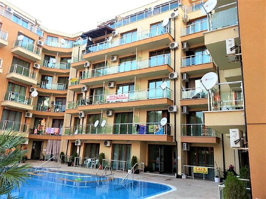 Просторная студия, которую можно переделать в квартиру с 1 спальней. Студия расположена на 4-ом этаже, в комплексе Amadeus 11. Полностью меблирована, со всей необходимой техникой. Студия располагает большой и удобной террасой, очень светлая, с видом на бассейн и парк. Комплекс окружен парковыми территориями с двух сторон и расположен в одной из самых зеленых частей Солнечного Берега.