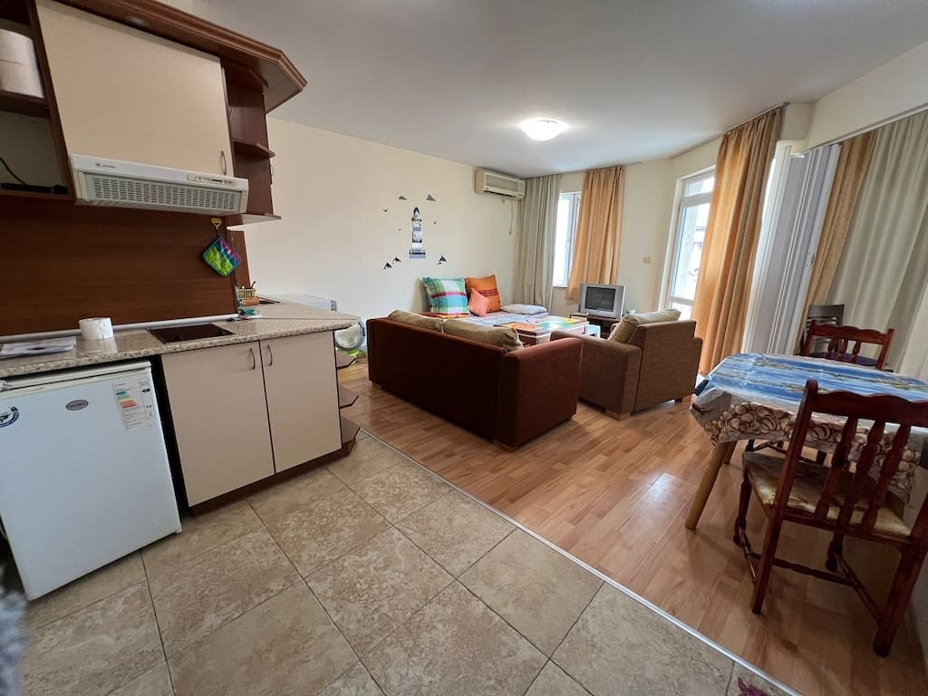 Предлагаем апартамент с одной спальней для продажи в комплексе Блэк Си, Солнечный берег, Болгария. Квартира расположена на пятом этаже. Общая площадь - 60 кв. м. Квартира предлагается к продаже с полной меблировкой. Из окон открывается вид на прилегающую территорию. Комплекс Блек Сий (Black Sea) расположен 600 метрах от пляжа, в тихом районе курорта Солнечный берег. Комплекс очень популярен среди тур - операторов. Через управляющую компанию существует возможность сдавать квартиры в аренду на весь сезон или год. Закрытый комплекс предлагает: бассейн, рецепция, круглосуточная охрана, бассейн, и ресторан.