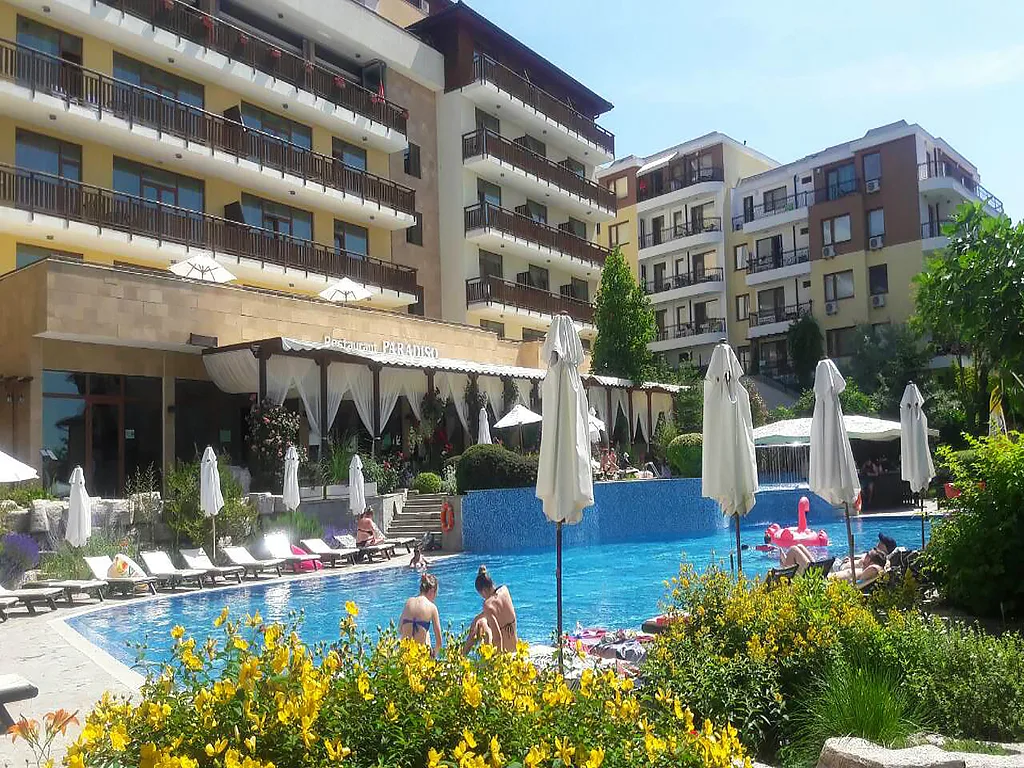 Вашему вниманию предлагается студия в жилом комплексе премиум-класса "Райский Сад" (Райска Градина, Garden of Eden). Он расположен на первой береговой линии на окраине курорта Святой Влас, в тихом месте вдали от шумных тусовок. В распоряжении собственников вся необходимая инфраструктура для комфортного проживания: рестораны, бассейны с детскими секциями, магазин, обмен валюты, подземный паркинг, СПА, массажный и косметический кабинеты и прочее. Контингент проживающих интернационален, много семей с детьми. Окна и балкон квартиры выходят на прекрасную территорию комплекса. В апартаменте есть кухонные шкафы, оборудованная ванная комната, холодильник, кондиционер, стиральная машина в техническом помещении, шкаф, двуспальная кровать, раскладной диван, стационарный телефон, телевизор, dvd-плеер.
