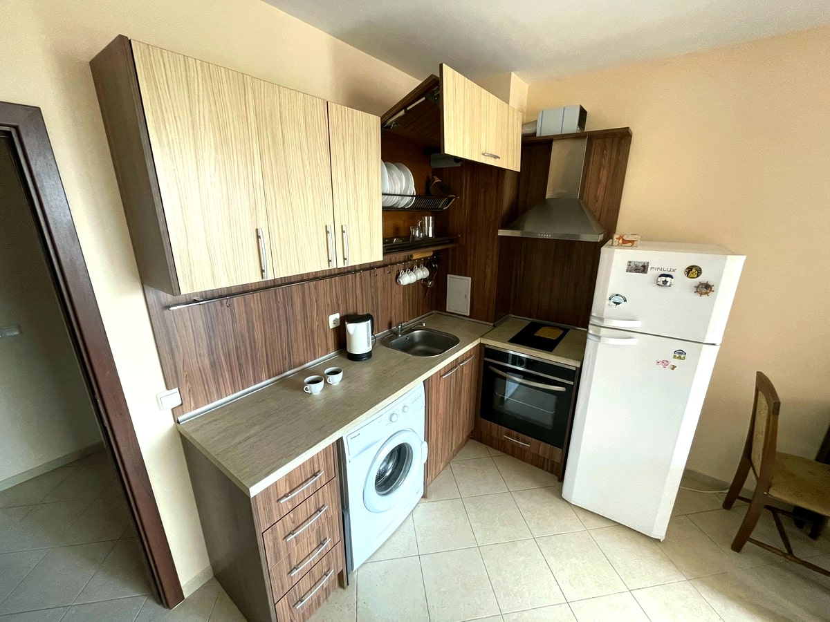 Вторая фаза курортного комплекса Каскадас снова открыта для соискателей премиум-недвижимости на Солнечном Берегу. Наша компания предлагает вам двухкомнатную квартиру с полным мебельным оснащением. Апартамент, обустроенный и готовый для проживания, находится на четвертом этаже в здании с лифтом. После продажи мебель и техника остаются будущим владельцам. Зеленая, закрытая от посторонних глаз территория комплекса благоустроена по авторскому проекту ландшафтного дизайнера, именно поэтому там так много зон для пеших прогулок и отдыха. Инфраструктура Каскадас включает: несколько бассейнов с водными горками, тренажёрные залы, парк, несколько ресторанов, есть детская комната и площадки, магазины и многое другое.