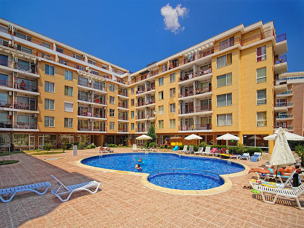 Новый, востребованный среди покупателей комплекс, расположен в тихом, но насыщенно инфраструктурными удобствами районе. Собственники могут отдохнуть у большого бассейна или насладиться блюдами локального ресторана. Есть паркинг, работает охранная служба. До центрального городского пляжа – всего 3 минуты ходьбы.