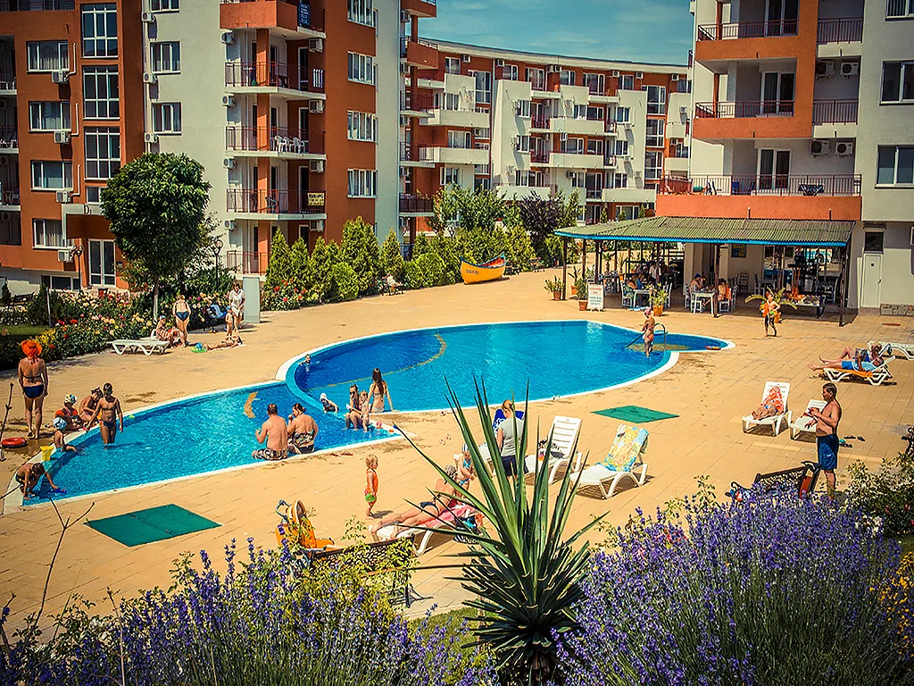 Предлагается к продаже прекрасная квартира в большом комплексе на первой линии от моря в комплексе» Марина Вью Форт Клуб», одном из -5ти подкомплексов Гранд Ризорт, объединяющих Марина Вью и Панорама Форт Бийч (на первой линии моря) и Краун, Империал и Сий Форт (на второй линии моря).Общая площадь квартиры 74 кв.м. Пятый этаж. Просторная терраса с красивым видом! Комплекс прекрасно расположен – рядом с морем, на возвышенности, в окружении леса и предлагает владельцам апартаментов прекраснейший вид на бухту Солнечного Берега и старый город Несебар. Комплексы находятся на возвышенности, чудесная комбинация горного и морского воздуха, видов на море и горы. Окруженные лесом комплексы, с лучшей на побережье инфраструктурой, позволяет комбинировать разнообразный активный отдых с релаксацией. Комплексы апартаментов предлагают владельцам квартир огромное количество вариантов времяпрепровождения: два ресторана с болгарской / европейской кухней, бар, кафе-мороженое