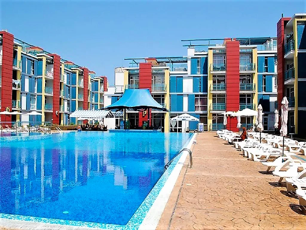 Предлагается к продаже апартамент с одной спальней в курорте Солнечный Берег, комплекс "ЭЛИТ-4". Апартамент имеет следующее распределение: две комнаты, кухня, балкон-терраса, два санузла. Квартира полностью меблирована, имеет общую площадь - 66 м2. В кухне встроенная мебель, вся необходимая бытовая техника. В комнатах установлены кондиционеры. В комплексе имеется подземная парковка, высокий забор, круглосуточная охрана. Во внутреннем дворе находится большой бассейн для взрослых и детей, детские игровые площадки. Комплекс оснащён лифтами. До моря всего 300 метров.