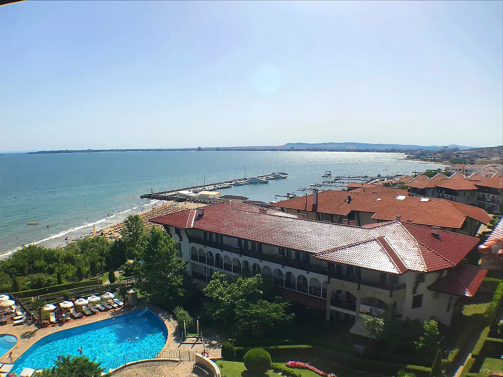 Предлагается к продаже апартамент с 2 спальнями и панорамным видом на море в прекрасном комплексе «Монастырь 2» расположенном на первой линии от моря.Апартамент расположен на 6-м этаже. Общая площадь апартамента - 97.15 кв.м. Состоит из: гостиной с кухонной зоной, коридор с большим шкафом-купе, двух изолированных спален, двух сан.узлов с душем и ванной, просторной террасы. Из окон квартиры открывается панорамный вид на море, Старый Несебр и бухту Солнечного Берега. Кондиционеры установлены в каждой комнате. Комплекс «Монастырь 2» спроектирован в стиле "Старый болгарский дом", его образ создают просторные террасы, узкие окна, большие карнизы, деревянные ворота, перила и лестницы. Комплекс состоится из трех зданий, объединенных прекрасно озелененного внутреннего двора с аллеями, ведущими к яхтенному порту.Удобства в комплексе:• 2 бассейна,• Бар с открытой террасой,• Магазин,• Ресторан,• Охраняемая парковка,• Видеонаблюдение на территории комплекса. В шаговой доступности:• Пляж,• Порт: 100м.,• Автобусная остановка: 200м.,• Супермаркет: 50м.,• Амфитеатр: 50м.,• СПА: 50м.,• Церковь: 50 м, Годовая поддержка: 500 евро.