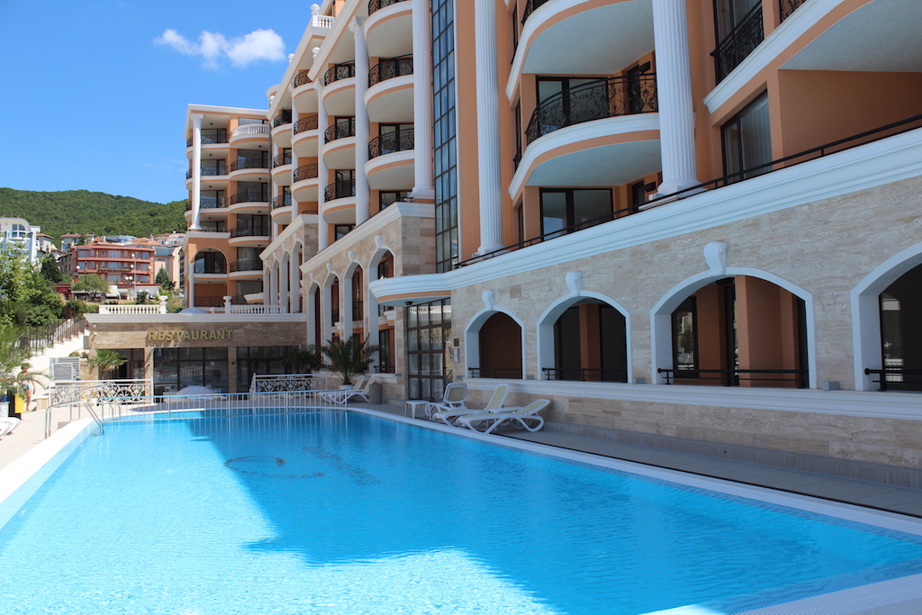 Предлагаем Вашему вниманию эксклюзивную квартиру - студию в комплексе Адмирал (Семейство комплексов Диневи Резорт). Квартира общей площадью 50 кв.м. располагается на третьем этаже здания. С террасы открывается прекрасный вид на море и старый город Несебр. Изюминка предлагаемой недвижимости , является выделенная площадь под гардеробную комнату. Квартира предлагается к продаже без мебели.