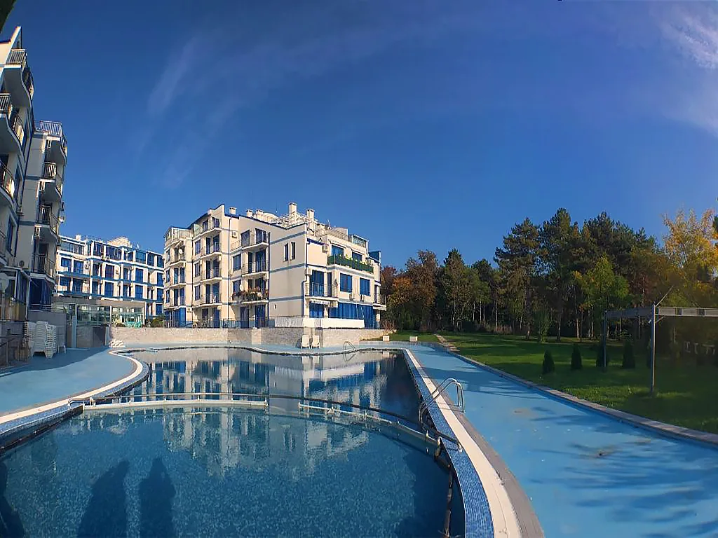 Предлагаем Вашему вниманию апартамент с 1 спальней в комплексе "Blue Bay Palace" расположенном на первой линии от моря в г. Поморье. Квартира находится на 3-м этаже здания с установленным лифтом. Общая площадь жилья составляет - 56 кв.м. Апартамент состоит из: гостиной с кухонным боксом, спальни, совмещенного сан.узла и балкона с видом на внутренний двор комплекса и бассейн. Продаётся с мебелью и бытовой техникой. Установлен кондиционер в гостиной комнате. В ванной комнате - тёплый пол. Комплекс "Блю Бэй Палас" расположен на морском берегу вблизи города Поморье. Частный пляж начинается непосредственно перед комплексом. Уединённость комплекса с собственным пляжем делает его уникальным для отдыха, где нет посторонних отдыхающих.