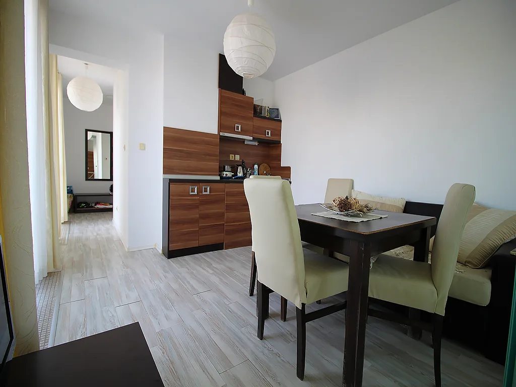 Предлагается к продаже уютная двухкомнатная квартира с большой террасой и видом на море, а так же парко-место в подземном паркинге в Рейнбоу 4. Квартира общей площадью 60 кв.м. находится на 6 этаже. Парко - место площадью 15,75 кв.м. находится в охраняемом подземном паркинге комплекса с контролем доступа. Недвижимость состоит: из прихожей, гостиной комнаты с кухонной зоной, спальни, санузла, террасы с видом на море. Квартира предлагается к продаже полностью меблирована и укомплектована бытовой техникой.