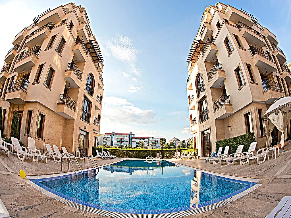 Хорошо меблированная и укомплектованная техникой студия в комплексе «Амара» в к.к. Солнечном береге. Квартира общей площадью 40,74 кв.м.( жилая 34,41 кв.м. ) расположена на втором этаже (есть лифт) здания. Комплекс «Амара» построен в тихом и уютном районе курорта и пользуется большой популярностью среди туристов. Стильная архитектура, высокое качество строительства, плавательный бассейн, бар, магазин продуктов, охрана, паркинг.