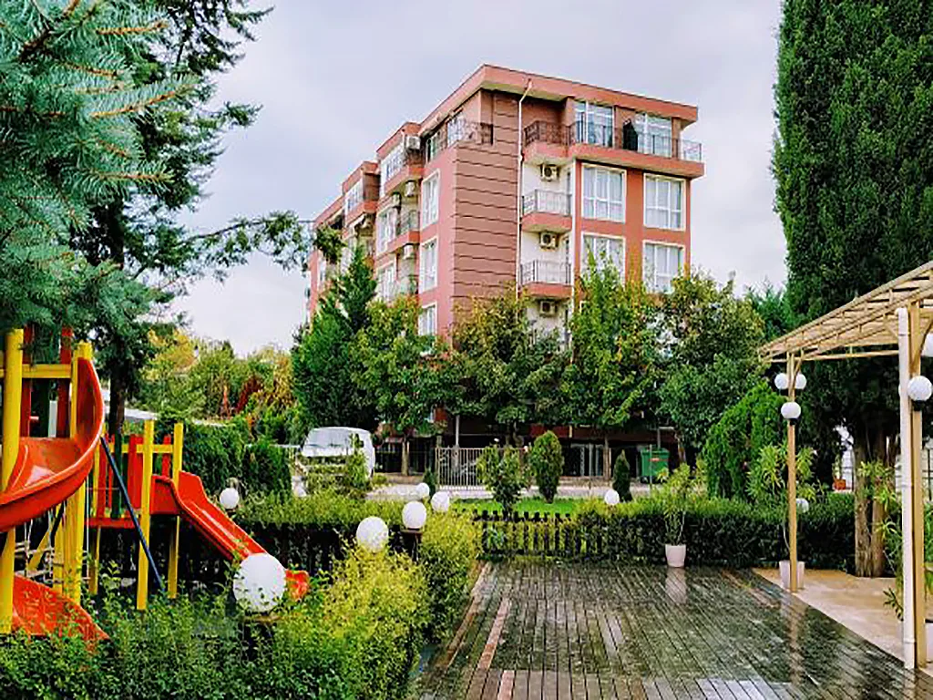 Предлагаем Вам полностью меблированную квартиру в уютном комплексе Мелия Резиденс 3 в 200 м. от пляжа. Трехкомнатный апартамент общей площадью 77,42м2 располагается на 2 этаже здания и состоит из : коридора, кухни-гостиной, двух спален, двух санузлов и двух террас с видом на озелененную территорию и бассейн. На территории комплекса расположен бассейн с шезлонгами для отдыха, детская площадка. Также, для безопасности и комфорта жильцов, имеются круглосуточная охрана. Апартамент подходит для приятного отдыха, или сдачи в аренду.