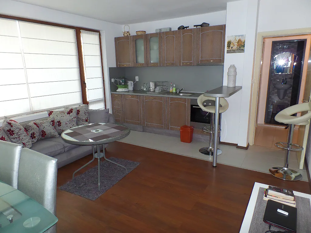 В курорте Равда, в одном из жилых домов, предлагается к продаже компактная двухкомнатная квартира общей площадью 62,66 кв. м., жилая площадь 54,58 кв.м. Светлый, хорошо оснащенный и подготовленный для заселения апартамент с отличной планировкой . Жилье находится на четвертом этаже. Территория, окружающая дом, закрыта. Установлено видеонаблюдение, во внутреннем дворе организованы места для парковки авто. В доме работает сервисная служба, есть зона для приготовления барбекю. Стоимость обслуживания составляет 200 евро в год. Дом находится в развитом районе Равды, всего в 150 метрах от моря. Рядом – вся курортная инфраструктура: заведения питания, магазины, банки, пункты валют, а также развлекательные центры для взрослых и малышей.