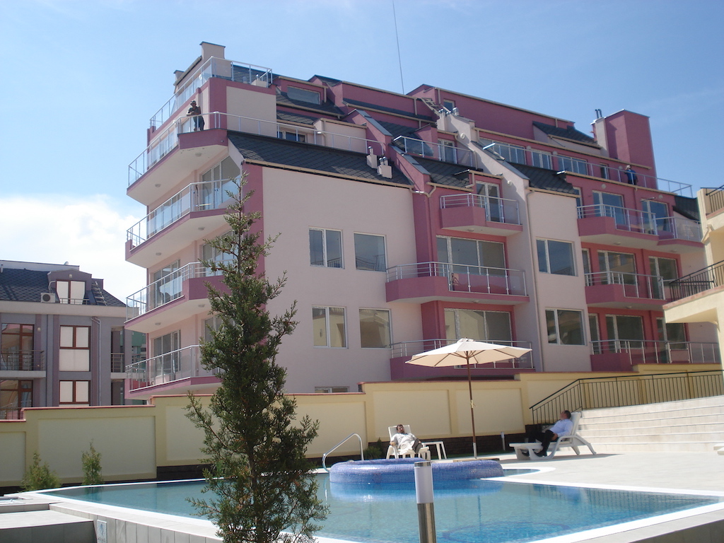 Предлагается на продажу двухкомнатная квартира с прилегающим просторным двориком в комплексе "Роуз Хаус". Комплекс находится в благоустроенном районе курорта на спокойной улице в 100 м от центра курорта. Расстояние до моря около 350 м. Жилье идеально подходит как для отдыха, так и для круглогодичного проживания. Квартира с общей площадью 46,89 кв.м находится на первом этаже здания. К квартире прилегает дворик площадью 38,82 кв.м. Квартира состоит из коридора, гостиной комнаты с кухней, одной спальни и ванной комнаты с туалетом. Квартира отлично меблирована, и оснащена бытовой техникой. Территория комплекса находится в хорошем состоянии. На территории комплекса имеется зона барбекю, беседка для отдыха и детская площадка. Круглосуточная охрана. Парковочные места для автомобилей. Такса на содержание составляет - 5 евро/кв.м в год.