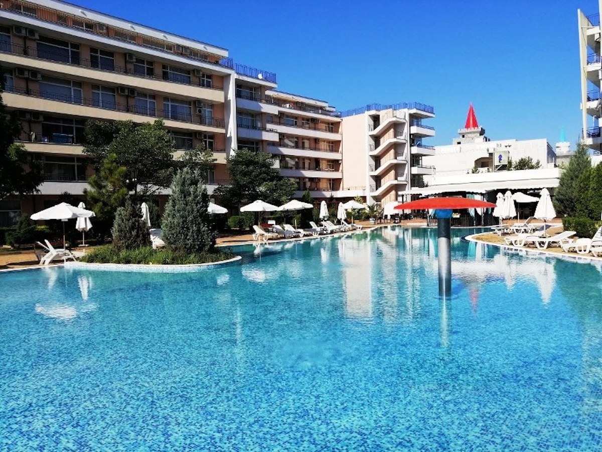 Представляем Вашему вниманию просторную студию в комплексе Гранд Камелия. Комплекс расположен в оживленном районе, подходящем для круглогодичного проживания. Квартира имеет общую площадь 47 кв.м и расположена на 2-м этаже. Распределение площади жилья; коридор, просторная гостиная с кухонной зоной и спальной зоной , сан.узла и террасы. Недвижимость может быть преобразована в двухкомнатный апартамент! Квартира полностью меблирована и оснащена бытовой техникой. Район является предпочтительным как для летнего отдыха, так и для круглогодичного проживания из-за хорошо развитой инфраструктуры . Рядом с комплексом находится супермаркет Младост, автовокзал и множество мелких овощных рынков и ресторанов . Гранд Камелия – это комплекс закрытого типа и имеет два больших открытых бассейна, теннисный корт, парковка , охрана, детская площадка и большой зеленый сад.