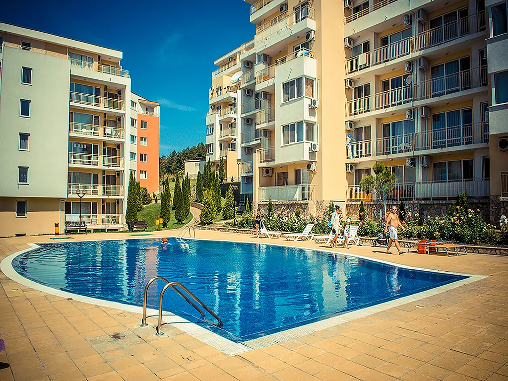 Продается квартира в комплексе "Краун Форт Клуб". Комплекс расположен между Святым Власом и Елените – это один из самых тихих и экологически чистых районов побережья. Этому месту отдают предпочтение люди, любящие и ценящие природу и спокойный образ жизни. В то же время до Солнечного берега ехать не более пятнадцати минут! На территории есть все необходимое: бассейны, водные горки, детские и спортивные площадки, рестораны, продуктовые магазины, прокат велосипедов и автомобилей, СПА-салон, мини-гольф, корт для большого тенниса, бильярд. Еще одним большим плюсом этого предложения является наличие у комплекса собственной парковки, а также закрытая территория, находящаяся под круглосуточной охраной. Квартира двухкомнатная, расположена на первом этаже здания, общая площадь 71,66 кв.м., застроенная 60,46 кв.м. Апартамент продается с необходимой мебелью и техникой.
