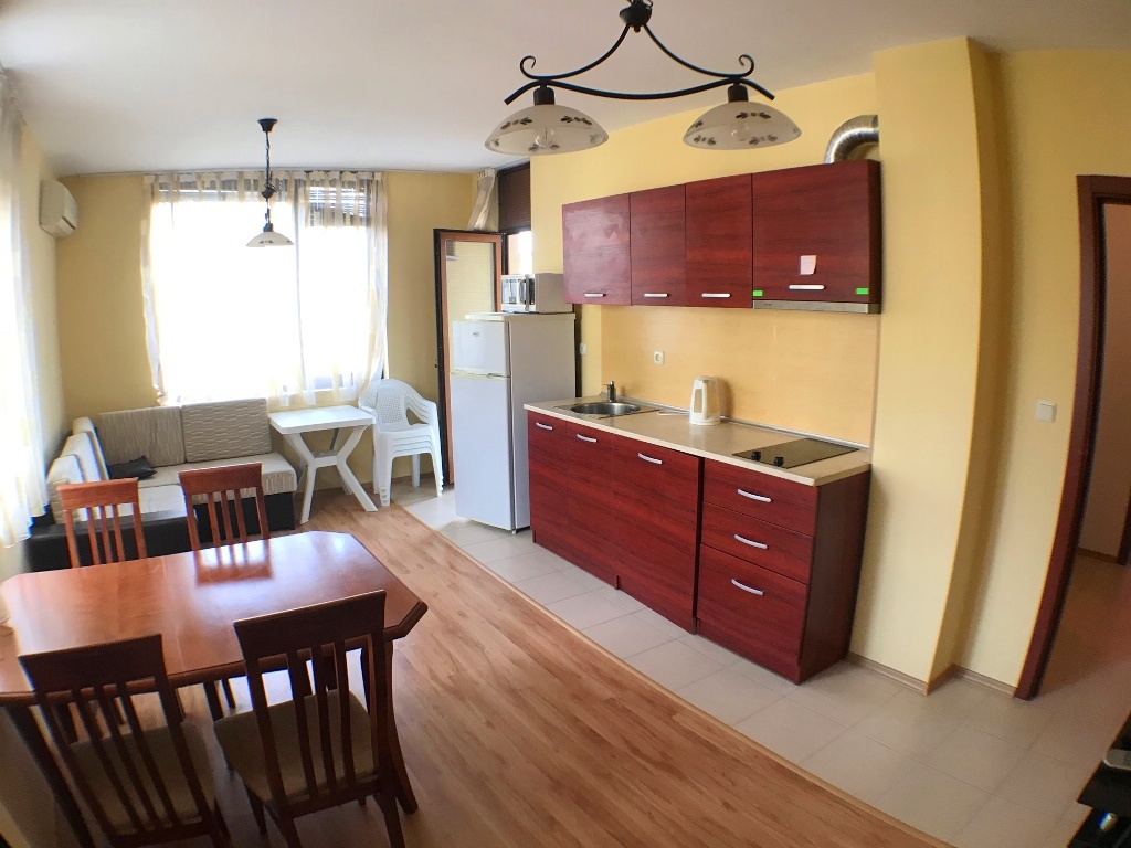 Предлагается к продаже уютный и светлый апартамент с 1 спальней в комплексе «Сиана 3».Апартамент расположен на 3-м этаже комплекса (без лифта). Общая площадь квартиры составляет – 64,0 кв.м. Апартамент состоит из прихожей, гостиной с кухонной зоной, спальни, сан.узела с туалетом и душем, просторной террасы. Продаётся с мебелью и бытовой техникой. Кондиционер установлен в гостиной. Юго-восточное расположение апартамента. Комплекс находится в 200 метрах от пляжа. От центра города 500 м. Комплекс обладает всеми необходимыми условиями для удобного и комфортного пребывания в любое время года: ресторан с болгарской и европейской кухнями (работает круглый год), 3 бассейна (для взрослых и детей), круглосуточная охрана, парковка. В шаговой доступности находится медицинский центр (500м.), автобусная остановка (200 м.), супермаркет 24ч. (50 м.).