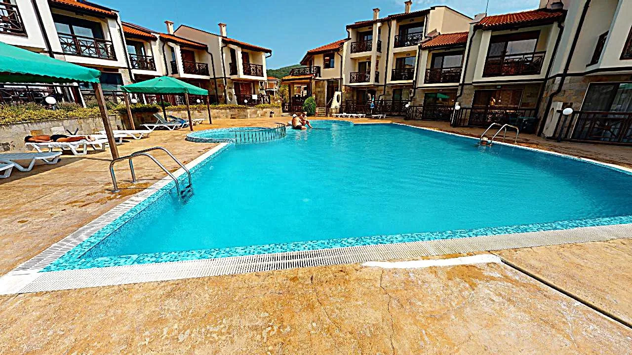 Новое предложение в Кошарице! На расстоянии трех с половиной километров от прекрасных пляжей курорта Солнечный берег, расположился комплекс Имперские Высоты. В данном апарт – комплексе предлагается к продаже трехкомнатный двухуровневый таунхаус общей площадью 116 кв.м. Квартира полностью меблирована и укомплектована всей необходимой бытовой техникой. В комплексе несколько семей проживают круглогодично. При проектировании комплекса застройщик сделал все возможное ,чтобы собственники недвижимости проживали в комфортных условиях. На круглосуточно охраняемой территории есть: бассейн, поле для гольфа, прачечная, СПА центр, бар, продуктовый магазин.