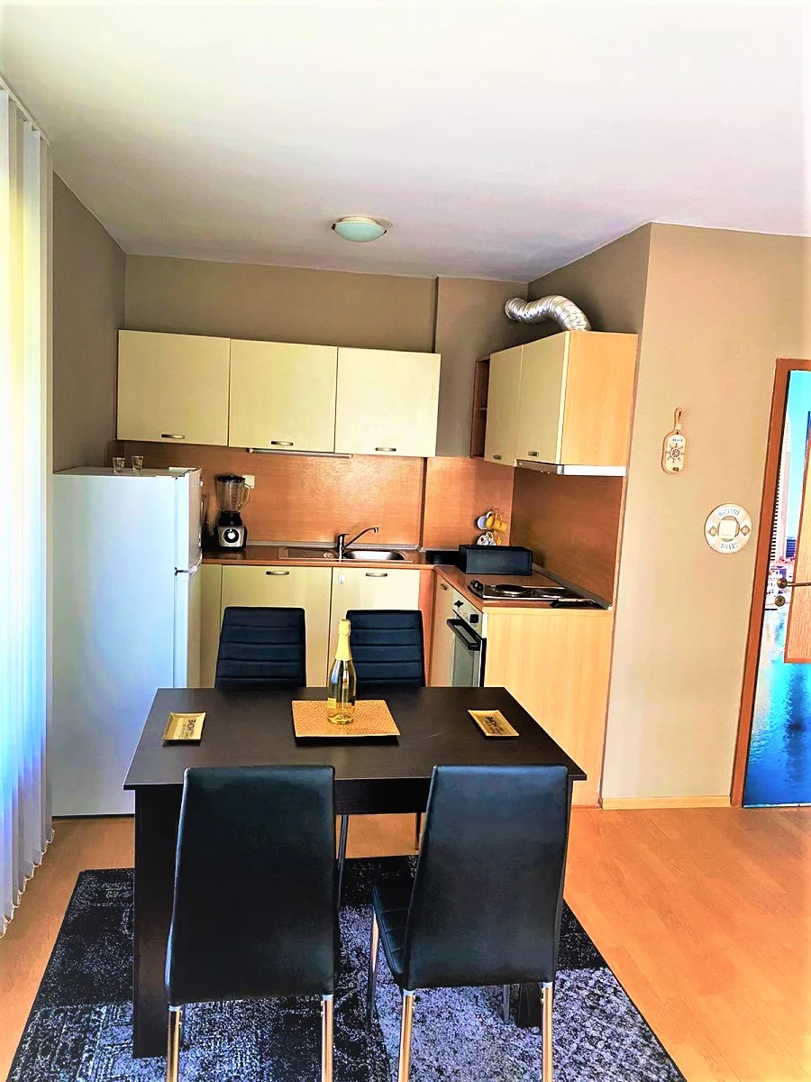 В 100 метрах от моря, в уютном комплексе Ясен, предлагается к продаже двухкомнатная меблированная квартира общей площадью 55 кв.м., расположенная на партерном этаже здания комплекса. В апартаменте недавно был произведен косметический ремонт и заменена вся мебель. Продажа осуществляется со всем обустройством – 100%-ая готовность для заезда или сдачи в аренду (хороший рентный потенциал). В качестве развлечений и услуг на территории комплекса реализованы: мини-поле для игры в футбол, детский игровой городок, лобби-бар, ресторан, теннисный корт, центр для фитнеса, а также, традиционно, большой плавательный бассейн для взрослых и детей. Также работает несколько магазинов и офисных центров, есть кафе. Территория под 24-хчасовой охраной. Двор тихий, есть сад для прогулок
