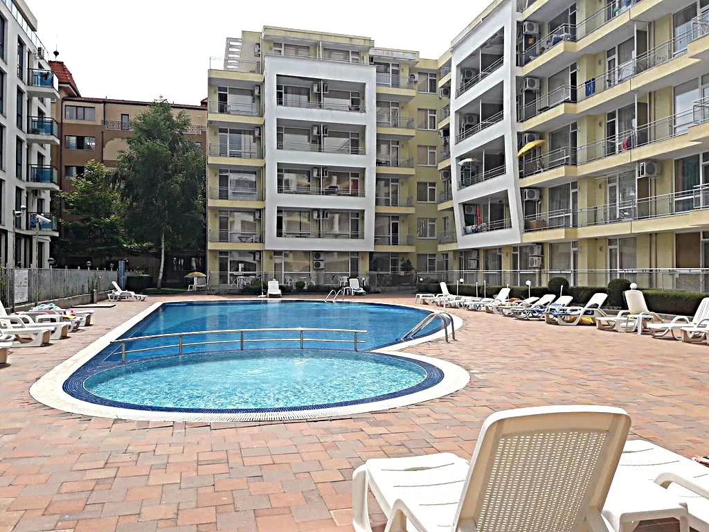 В Солнечном береге, в апарт - комплексе Сансет Бич 2, предлагается к продаже просторная квартира – студия общей площадью 40 кв. м. Включает гостиную с зонами для отдыха и приготовления еды, компактную прихожую, санузел и вместительную террасу. На круглосуточно охраняемой территории Сансет Бич 2 есть все необходимые для отдыха коммуникации: двухсекторный бассейн для детей и взрослых, парковая зона для прогулок, автостоянка, услуги трансфера и туристической фирмы и многое другое. Расположенный всего в 600 метрах от моря, он отгорожен от туристической суеты, и в то же время приближен к основным локациям: ресторанам, рынкам, супермаркетам и т.д