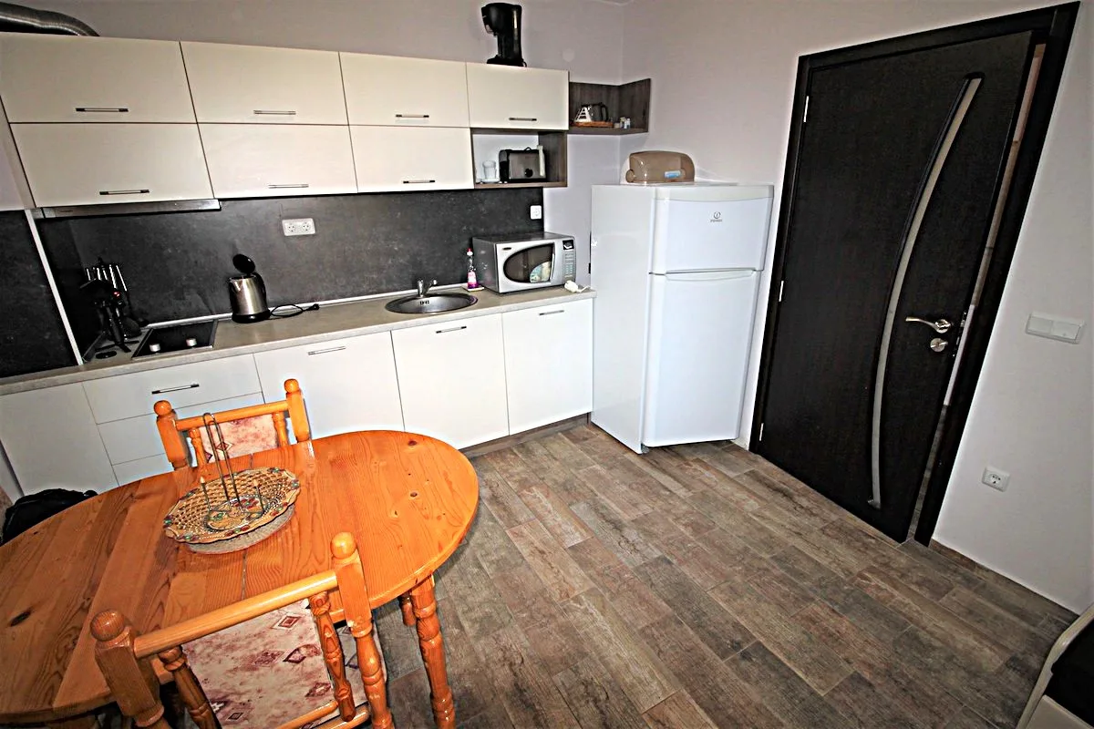Комплекс Каскадас 12 (Cascadas 12) – одно из зданий сети Каскадас Фемили Резорт, предлагающий максимальное количество удобств, необходимых для комфортного проживания собственников недвижимости и их гостей, желающих отдохнуть от суеты и шума курорта. Апарт – отель располагается в тихой западной зоне к.к. Солнечный берег, в 15 минутах от пляжа и набережной курорта. Квартира расположена на первом (партером) этаже, площадью 61 кв.м. Состоит из прихожей, гостиной с кухонным боксом, спальни, совмещенного санузла и лужайки. Мебель в отличном состоянии, кухонный бокс оборудован. Для отопления жилья установлен кондиционер. На балконе есть садовая мебель.