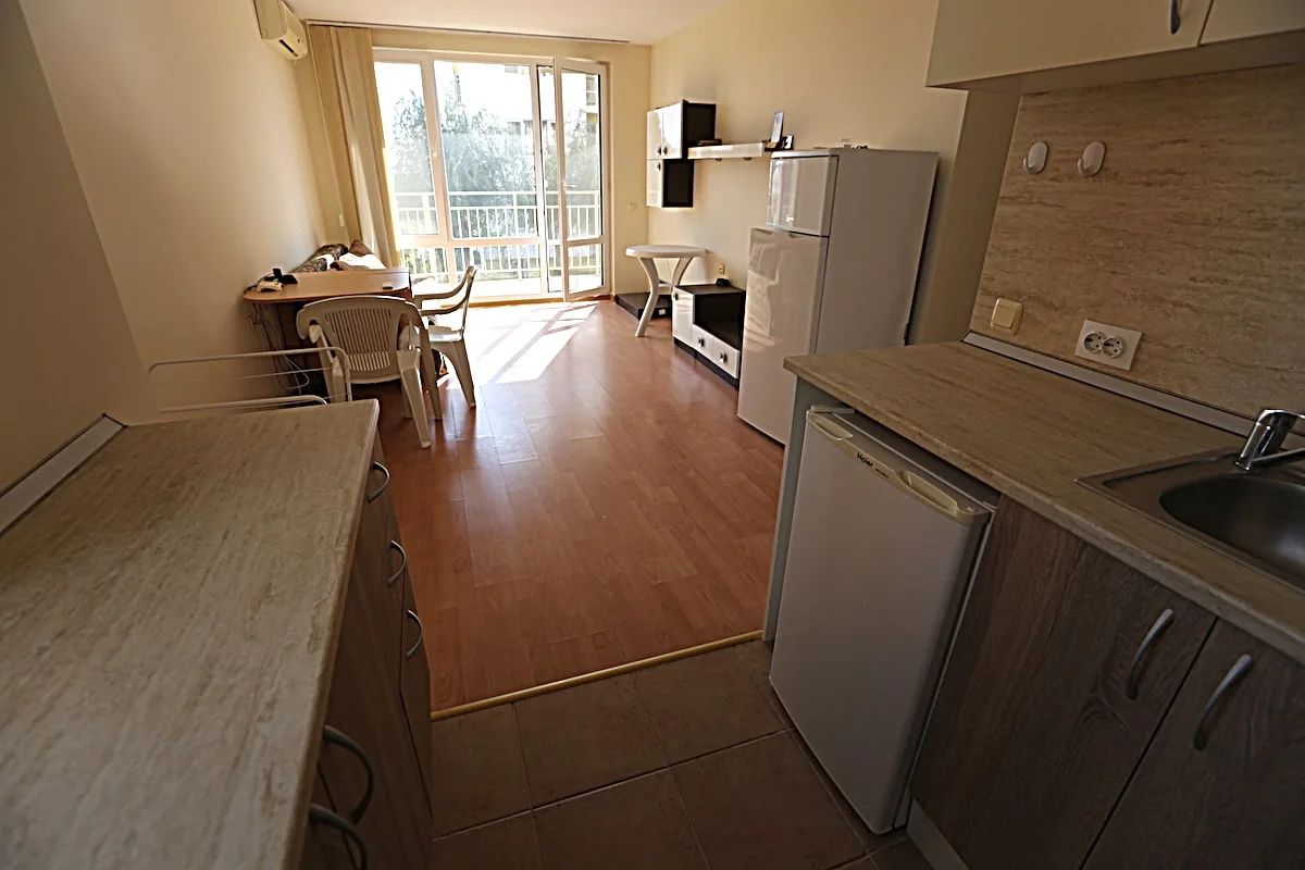 В одном из популярных комплексов Империал Форт Клуб– новинка! К продаже предлагается двухкомнатная квартира на первом этаже. Продажа осуществляется со всей мебелью и техникой – квартира полностью подготовлена для переезда новых владельцев и не требует дополнительных затрат. Общая площадь составляет 57 кв.м., она состоит из прихожей, просторной гостиной с оборудованной кухней (она удобно расположена в нише, есть окно), спальни с двуспальной кроватью и большой террасы, с которой есть прямой выход на лужайку и зеленую внутреннюю территорию. Жилой комплекс закрытого типа, расположенный в Святом Власе, в нескольких минутах от Черного моря, в тихом месте среди зелени, прекрасно подходит как для сезонного отдыха, так и для переезда на постоянной основе, для этого созданы все условия. Исключительно удачная внутренняя инфраструктура включает в себя бассейны, рестораны, магазины, зоны для отдыха, фитнес, СПА, игровые площадки для детей, спортивные площадки и теннисные корты, паркинг и многое другое