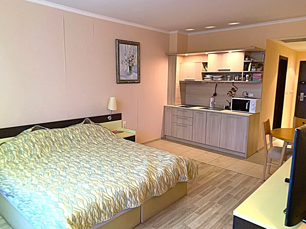 Шикарное предложение в Святом Власе! Хорошо меблированная двухкомнатная квартира в Святом Власе в элитном апарт - комплексе Grand Hotel Saint Vlas, расположенном на первой линии от моря , и в 10 минутах ходьбы от яхт пристани. Квартира общей площадью 94 кв.м., находится на третьем этаже здания комплекса. Недвижимость состоит из коридора, спальни с собственным санузлом, просторной гостиной с кухонной зоной, санузла и двух террас с которых открывается вид на море.
