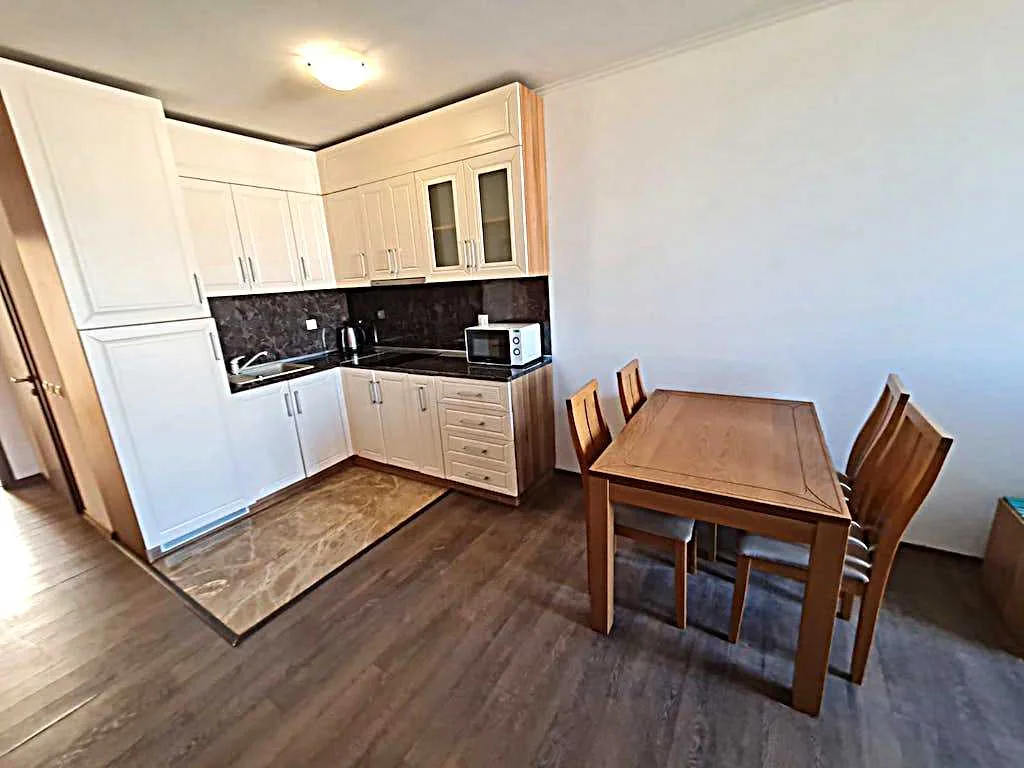 Аполлония Резорт – шикарный комплекс, возведенный между Созополем и Черноморцем, вновь открывает свои двери для соискателей недвижимости в Болгарии! На третьем этаже поступил в продажу меблированный апартамент с одной спальней. Площадь квартиры – 74,61 кв. м. В апартаменте установлена новая мебель и техника, отличная и очень удобная планировка. Здание построено непосредственно на пляже, побережье прекрасное – широкое и чистое, оборудовано для отдыха. Для незабываемых впечатлений четырехзвездочный комплекс предлагает поужинать в ресторане на берегу, пул-баре у бассейна или окунуться в атмосферу празднества во время анимационной программы. Работает магазин, фитнес-центр и автопрокат.