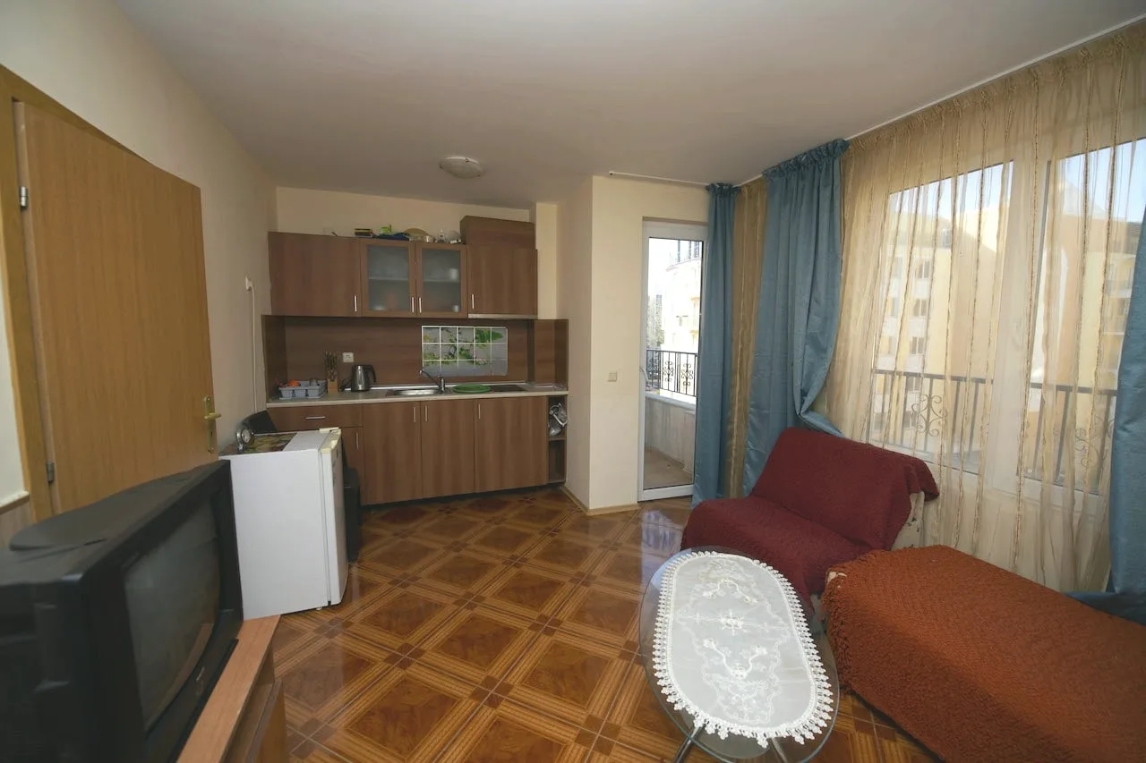 Новое, эксклюзивное предложение для клиентов АН Lev & Mar Group ! Двухкомнатный апартамент в курортном комплексе Сан Лайт Солнечный берег. Квартира расположена на третьем этаже, из окон которого открывается вид на прилегающую территории. На площади в 68,8 кв. м. установлена мебель, на просторной террасе есть комплект для завтрака, монтирована большая кухня. Продажа с комплексным оснащением. Комфортабельный, современный и благоустроенный комплекс – настоящий оазис для отдыхающих. На его территории работает ресторан с интернациональными блюдами, лобби-бар, есть продуктовый магазин и бассейн. Поблизости много развлечений: картинг, водные виды спорта, верховая езда и многое другое. Рядом аквапарк, низкая такса – всего 6 евро