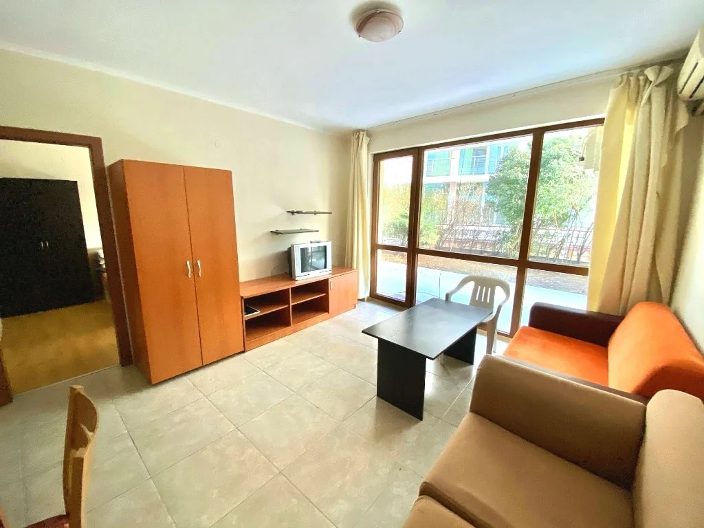 Предлагаем Вашему вниманию – отличный объект недвижимости всего лишь в пяти минутах от старинной части Несебра! В комплексе Виго Панорама предлагается к продаже двухкомнатная квартира. Общая площадь апартамента – 86,6 кв. м, находится на партерном этаже. Квартира продается с меблировкой техникой. Из окон – вид на внутреннюю часть территории комплекса. Пешая доступность от парка и старинной части Несебра (всего 800 метров) позволит вам с удовольствием проводить свободное от водного отдыха время. Комплекс Виго Панорама построен на первой береговой линии, его внутренняя инфраструктура представлена: открытым сезонным бассейном, спортивным центром, великолепным садом и рестораном. На солнечной террасе оборудованы места для отдыха. До ближайшего аквапарка побережья – 10 минут езды, до моря всего 50 метров