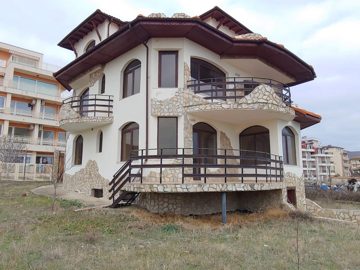 Предлагается к продаже новый, трехэтажный дом с подвалом и невероятным видом на море в г. Святой Влас, Болгария. Дом площадью 245 кв.м, на первом этаже расположены: прихожая, 2 спальни, 2 санузла, большая гостиная с кухней и террасой с выходом во двор. На втором этаже: прихожая, 2 спальни, каждая из которых с собственными террасами, 2 санузла, большая гостиная с кухонным блоком, столовой зоной и большой террасой с видом на море и гору. На третьем этаже: прихожая, санузел, спальня, гостиная с кухонным блоком и огромной террасой с панорамным видом. Так же есть подвал, площадью 86 кв.м., с окнами. Подвал может быть оборудован как фитнес с сауной, мастерские, складские помещения, прачечная и прочее. Все этажи изолированы друг от друга, лестница внешняя. У дома много возможностей! Можно объединить все этажи а один большой дом или оставить в таком виде и использовать как отдельные апартаменты, для сдачи в аренду. Дом расположен на земельном участке площадью 420 кв м, участок огорожен, есть плодовые деревья, паркинг. Электричество, вода и канализация – центральные. Есть Акт 16!