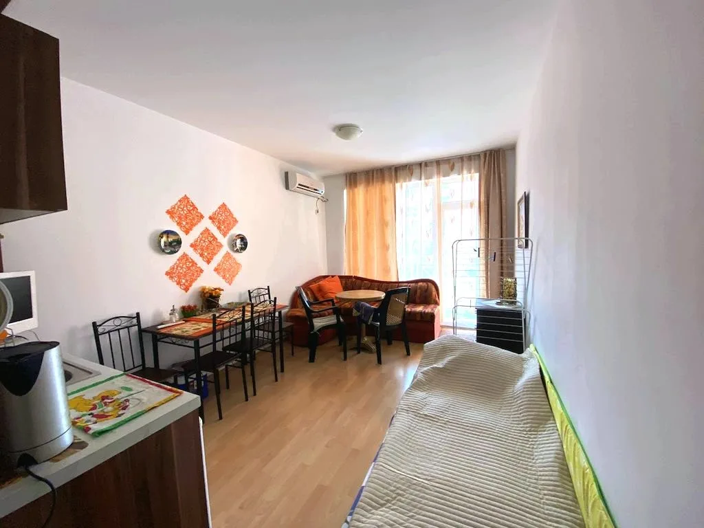 Новое предложение от АН Lev & Mar Group в Солнечном береге! На втором этаже одного из корпусов комплекса Санни Дэй 6 продается квартира-студия, с полной меблировкой и основной необходимой техникой. Общая площадь – 35 кв.м., есть балкон, выходящий на территорию комплекса. Санни Дэй 6 – масштабный жилой комплекс, занимающий площадь 60000 кв.м., состоящий из множества малоэтажных жилых зданий, на безопасной, закрытой территории. Собственникам и гостям доступны такие удобства и услуги, как несколько бассейнов, спортивные площадки, фитнес, магазины, кафе, паркинг. Обслуживание – круглогодично. Регулярное транспортное сообщение с другими комплексами сети, а также с Солнечным Берегом