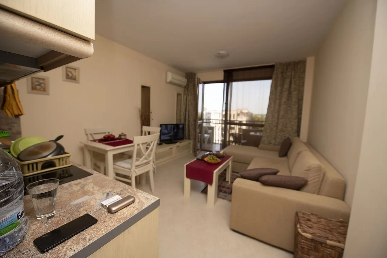 Во второй фазе апартаментного комплекса Каскадас предлагается к продаже двухкомнатная квартира. Апартамент располагается на шестом этаже, он меблирован и оснащен всей необходимой техникой. Общая площадь жилья – 63,06 кв. м. Каскадас Фемили Резорт – это масштабный и очень красивый комплекс, корпуса которого связаны стильной и инфраструктурно богатой территорией. Второй корпус – один из самых первых, он построен в девятистах метрах от моря, в самом центре квартала Чайка. Внутренний двор состоит из бассейна с водными аттракционами, ресторана, кафе, детских развлекательных локаций, спортивных и бьюти-зон