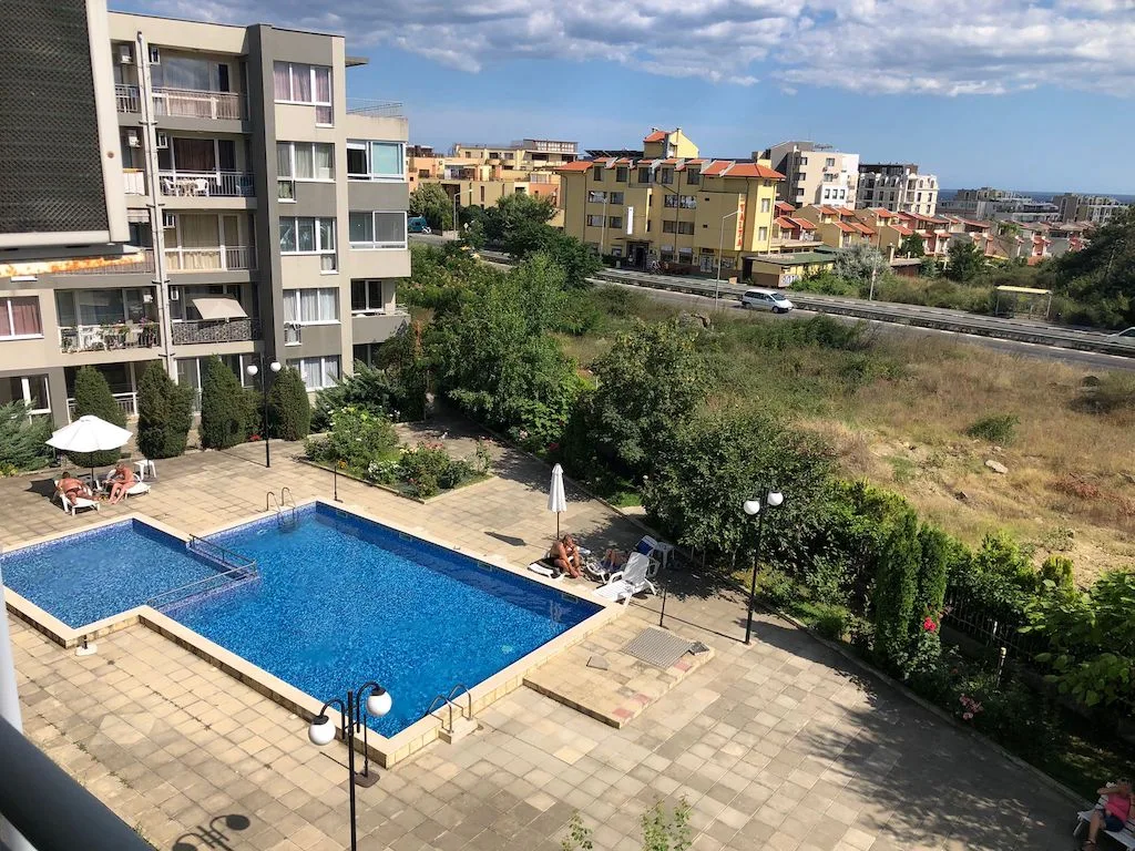 Новинка этого сезона! В курортном комплексе Баттерфляй, в 500 метрах от пляжа, предлагается к продаже трехкомнатная квартира площадью 96,0 кв. м. Этот просторный, светлый и оборудованный всем необходимым для проживания апартамент находится на третьем этаже. Отличная планировка: две спальни автономные, просторная гостиная с кухней, санузел и две террасы с видом на море и горы. Обращаем ваше внимание: в отеле Баттерфляй чрезвычайно низкая такса коммунальной поддержки – 5,0 евро за 1 кв. м. На территории комплекса построен большой игровой городок с качелями и горками, есть плавательный бассейн, парковка, разрешено проживание с домашними любимцами