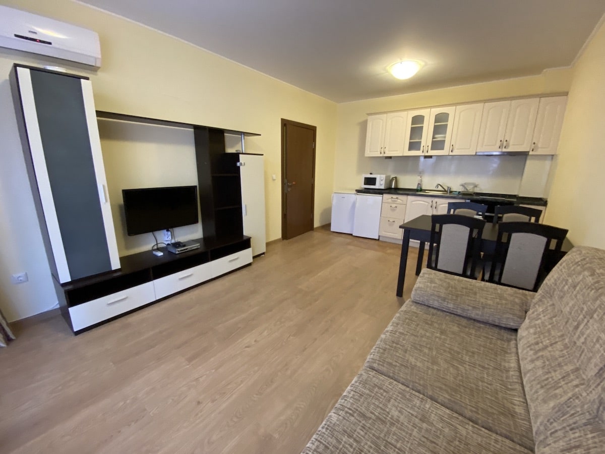 АН Lev & Mar Group предлагает к продаже новую двухкомнатную квартиру в Несебре, в квартале Черно Море – светлая, уютная и полностью меблированная. Общая площадь предлагаемой к продаже квартиры – 68,46 кв.м., она находится на втором этаже жилого здания. Гостиная традиционно совмещена с кухней, есть отдельная спальня, санузел и открытая терраса. Жилой дом получил Акт 16, в нем без проблем можно проживать как в сезон, так и на круглогодичной основе. Такса за обслуживание с жильцов не взимается. В здании нет лифта. На расстоянии всего нескольких минут есть магазины, а также остановка общественного транспорта. Море – приблизительно в 900 метрах.