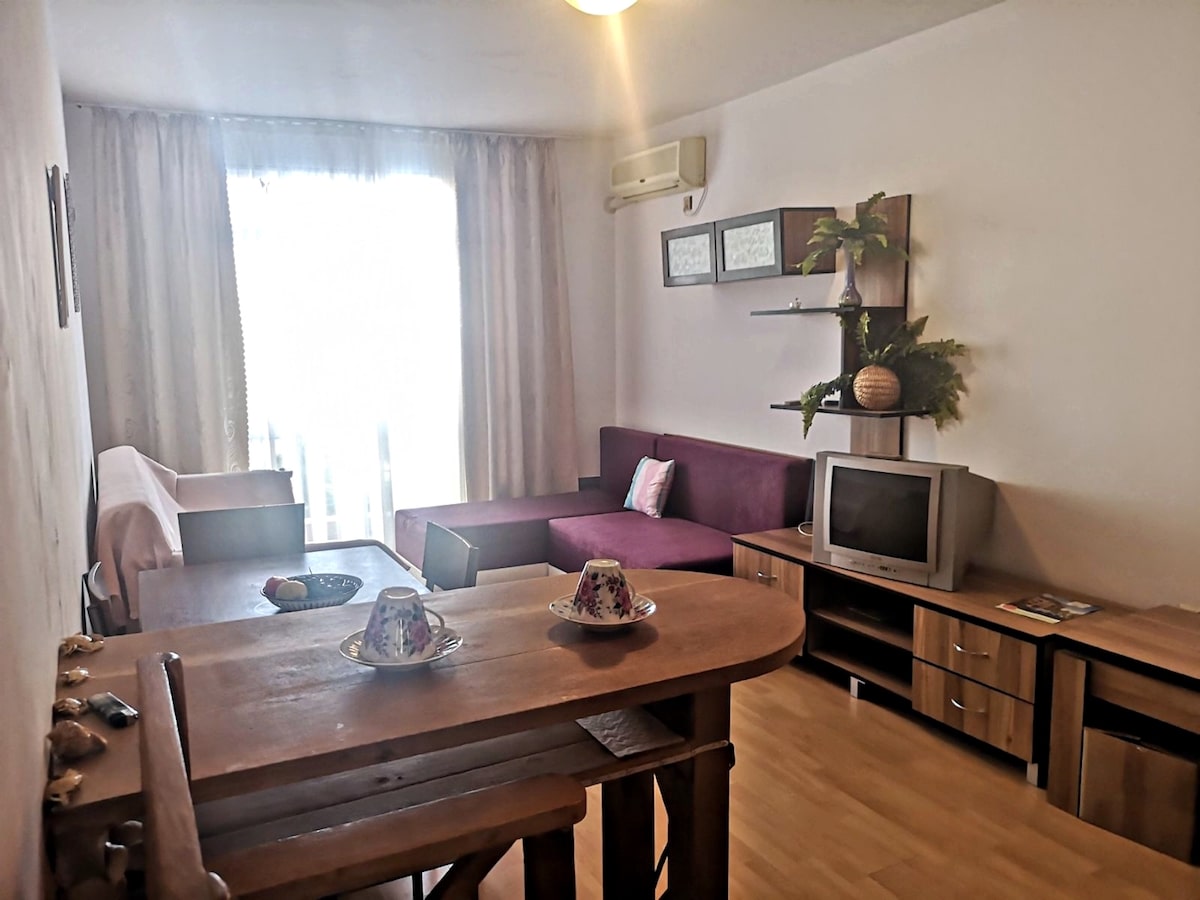 На топовом морском курорте Солнечный берег, доступен к приобретению трехкомнатный апартамент по отличной цене! Это – традиционная квартира с готовым интерьером, общей площадью – 75 кв.м, которая расположена на четвертом этаже одного из корпусов Санни Дэй 3. Уютная обстановка с мебелью и техникой, все благоустройство входит в цену. Обустроенный двор с закрытой территорией, большой открытый бассейн, магазин, кафе и безопасная парковка. Море в девятистах метрах, местность спокойная, в паре кварталов оживленный район со всей необходимой инфраструктурой