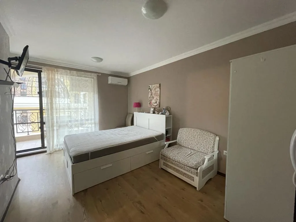 АН Lev & Mar Group предлагает к продаже просторную квартиру – студию в отличном жилом комплексе Sea Shore (Морской берег) в одном из самых востребованных у покупателей Болгарской недвижимости курорте Святой Влас. Комплекс располагается на второй береговой линии от моря в 200 м от моря. Это тихая и спокойная часть курорта рядом со всей необходимой для комфортного проживания инфраструктурой. Комплекс состоит из красивого семиэтажного здания с прилегающей ухоженной территорией. Удобства и услуги предлагаемые собственникам жилья: бассейн с зоной отдыха, сауна, паровая баня. Парковка автомобилей, Круглосуточная охрана, рум-сервис. Просторная меблированная студия площадью 40 кв.м находится на третьем этаже здания с лифтом. Квартира предлагается на продажу с мебелью и бытовой техникой. Изюминкой данного предложения является возможность рассрочки платежа на один год.