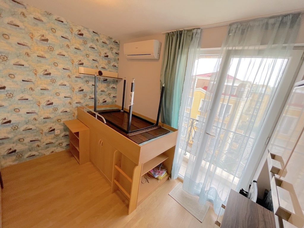 Агентство недвижимости Lev&Mar Group предлагает вашему вниманию предлагает отличный апартамент в инфраструктурно развитой части курорта Солнечного берега – двухкомнатный апартамент в ЖК Мессембрия Палас. Это – жилье, расположенное на пятом этаже, и полностью готовок к заселению – двухкомнатная квартира общей площадью 61,0 м. кв. Функциональный дизайн интерьера остается покупателям. Есть просторная открытая терраса с видом на прилегающую территорию Курортная атмосфера ЖК Мессембрия Палас лишь дополняет функционал современного жилищного комплекса, прекрасно подходящего для ПМЖ. В комплексе взимается стандартная такса поддержки, а спектр удобств позволяет чувствовать себя комфортно в течение всего года. Море –в трехстах метрах от территории