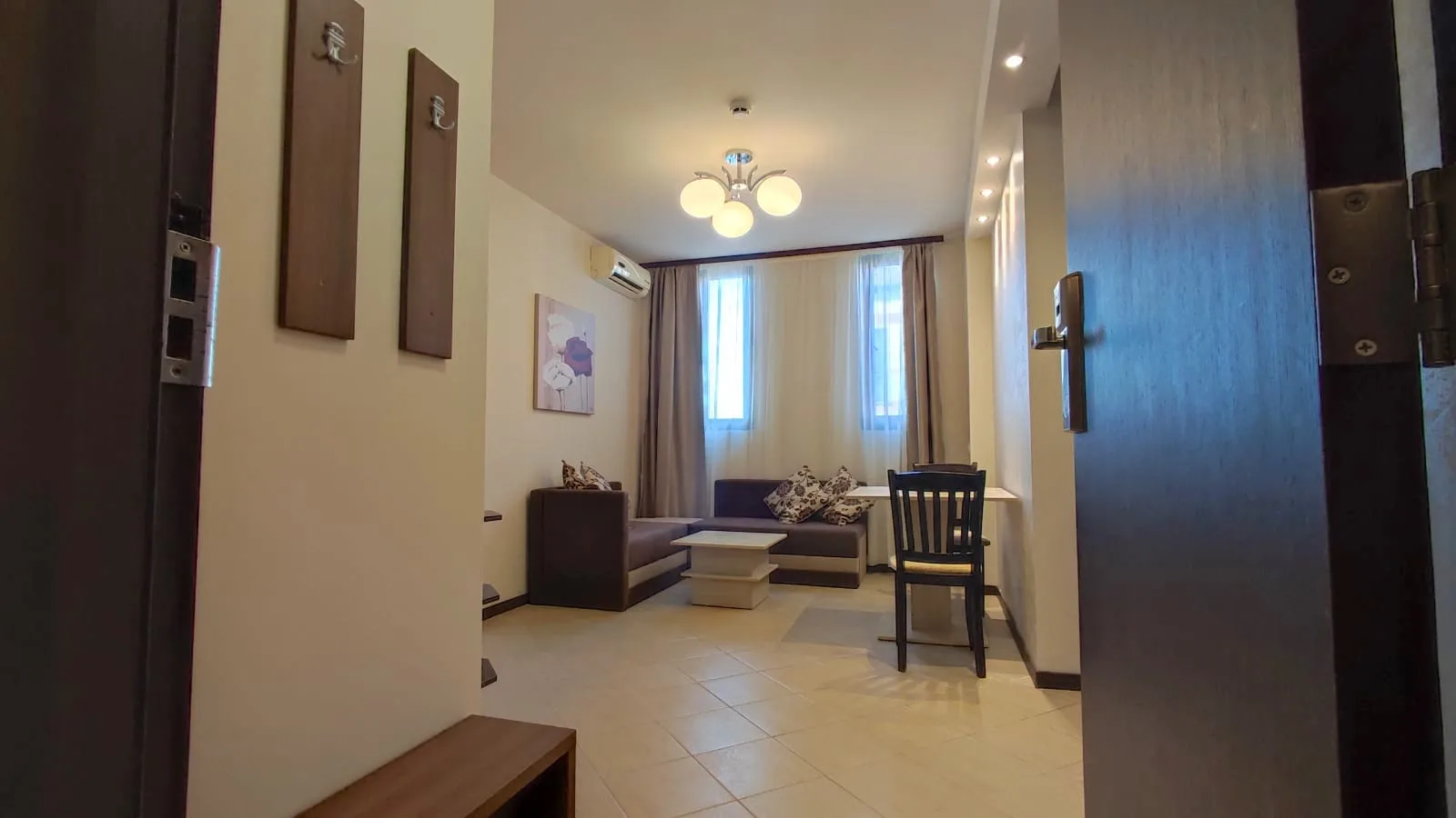 Внимание, отличный трехкомнатный апартамент уже в продаже и ожидает новых собственников! Он находится в комплексе Тарсис, масштабном апартаментном комплексе, построенном в зеленой и комфортабельной части Солнечного берега. Площадь квартиры – 75 кв. м, третий этаж с видом на бассейн и территорию комплекса. Апартамент меблирован, сделан косметический ремонт, в каждой комнате – комплект мягкой и корпусной мебели. В санузле – душевая кабина, есть цифровая и бытовая техника. Тарсис – это один из самых новых проектов, который окружен частной парковой зоной, и предлагает собственникам наиболее полноценный и обширный спектр удобств. На территории работает крупный ресторан закрытого типа, СПА-клуб, бар, салон красоты и кабинет косметолога, несколько бассейнов, прачечная и химчистка, а также масштабная зеленая зона для прогулок и отдыха, оснащенная садовой мебелью. На всей территории комплекса есть беспроводной интернет. До пляжа – шестьсот метров. В комплексе доступная такса поддержки – всего 10 евро за 1 кв. м.