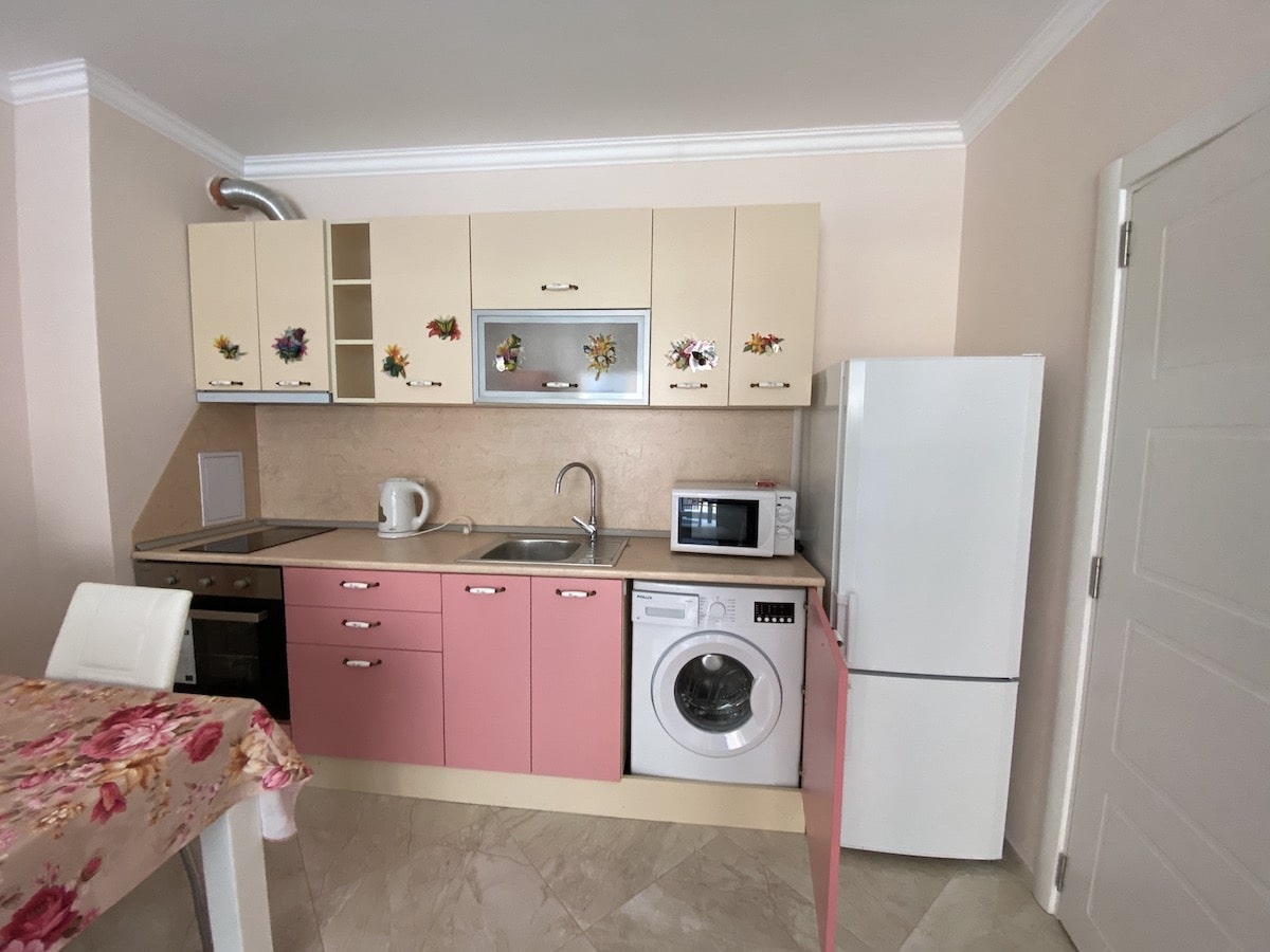 Прекрасный апартамент в эксклюзивном комплексе Вилла Флоренция! Двухкомнатная квартира площадью 65 кв. м. находится на втором этаже. Отличная планировка: терраса, санузел, одна спальня и гостиная с кухонным уголком. В подарок покупателям остается высококачественная мебель и встроенная техника. Вилла Флоренция – комплекс с безупречным сервисом и отличным местоположением. Здание возведено в центре квартала Юрта, в пяти минутах пешей прогулки от моря. Поблизости много городских и курортных удобств, на побережье – локации для спорта и отдыха. В Вилла Флоренция все создано для комфортного ПМЖ: эстетичные общие части, два корпуса объединены территорией с бассейном, игровой площадкой для детей, рестораном, фитнес-центром и летними беседками. Есть открытый и подземный паркинг, работает охрана.