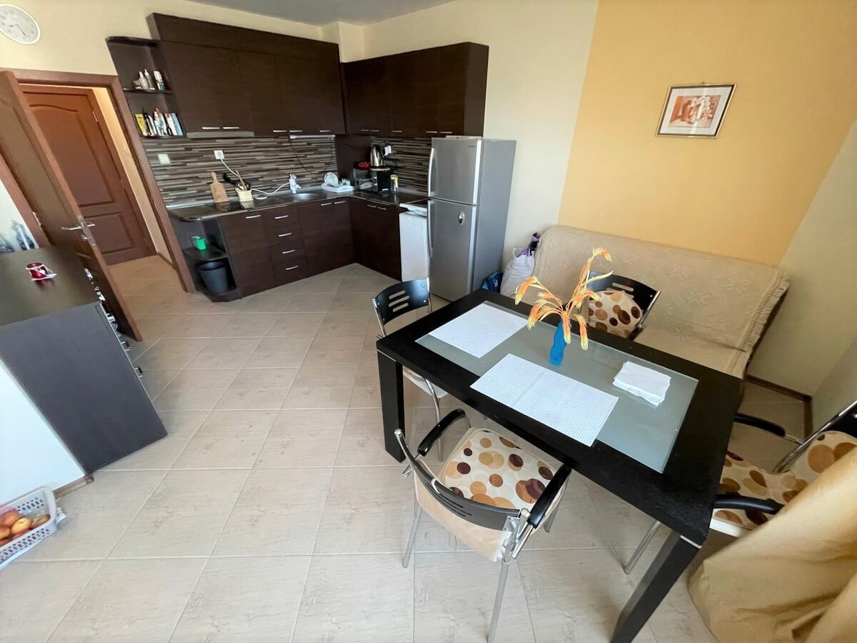 Эксклюзивное предложение от нашего агентства в Солнечном береге! Недорогая двухкомнатная квартира в комплексе «Амадеус 3». Она занимает общую площадь 64 кв.м. и расположена на четвертом этаже здания комплекса. Продается со всей техникой и кухонными принадлежностями. Гостиная и спальня полностью укомплектованы мебелью. Выход на лоджию организован из обеих комнат. Сторона не солнечная, т.е. летом в апартаменте не бывает жарко. На территории комплекса: бассейн, кафе, охрана, консьерж, паркинг для собственников. Рядом вся необходимая для жизни инфраструктура: супермаркеты, магазины, кафе-бары и рестораны, аптеки, крупный аквапарк и многое другое.