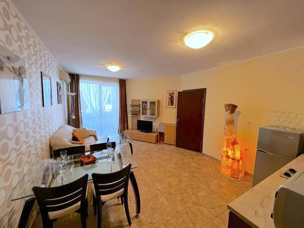 Новое отличное предложение в курортном поселке Равдв! В прекрасном курортном поселке болгарского побережья, предлагается к продаже квартира в комплексе, входящем в семейство Аполлон. Это – один из самых эстетичных ЖК на побережье среди тех, которые предназначены для постоянного проживания. Вниманию клиентов АН Lev & Mar Group – двухкомнатный апартамент, общей площадью 65 м. кв. партерный. В стоимость продажи включен интерьер – техника и мебель. Аполлон 3 – комплекс, и инфраструктура, и расположение в ста пятидесяти метрах от моря, и архитектура которого способны радовать и восхищать. В этом доме чрезвычайно будет удобно всей семье – и детям, и взрослым. На территории много места для спокойного время препровождения, есть магазины и заведения питания, удобные приложения – спорт - центр, СПА, парковка. Рядом развитый квартал Аурелия