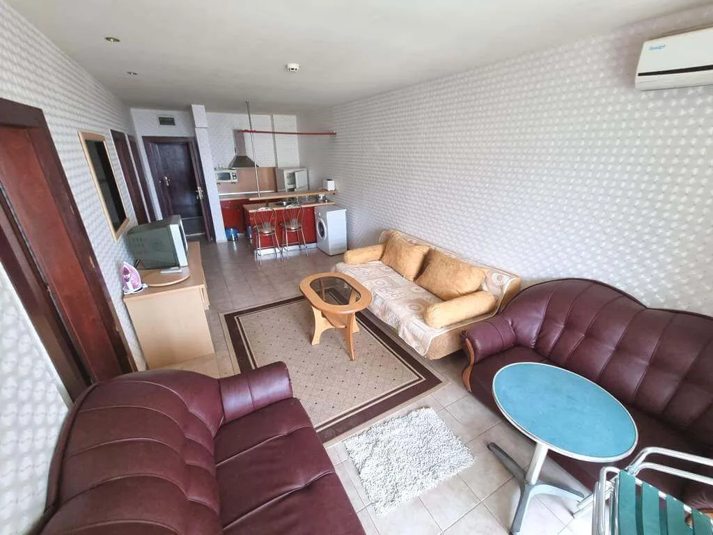 Прекрасное предложение в 50 м от моря в курорте Солнечный берег! Предлагается к продаже трехкомнатная квартира из окон и террасы которой открывается вид на бассейн и территорию комплекса. Квартира расположена на восьмом этаже, Общей площадью 88,0 кв. м. Состоит из прихожей, гостиной с кухонным боксом, двух спален, двух санузлов террасы.. В каждой комнате есть кондиционер. Квартира меблированная и оборудованная. Подходит как для круглогодичного проживания, так и для сдачи в аренду.