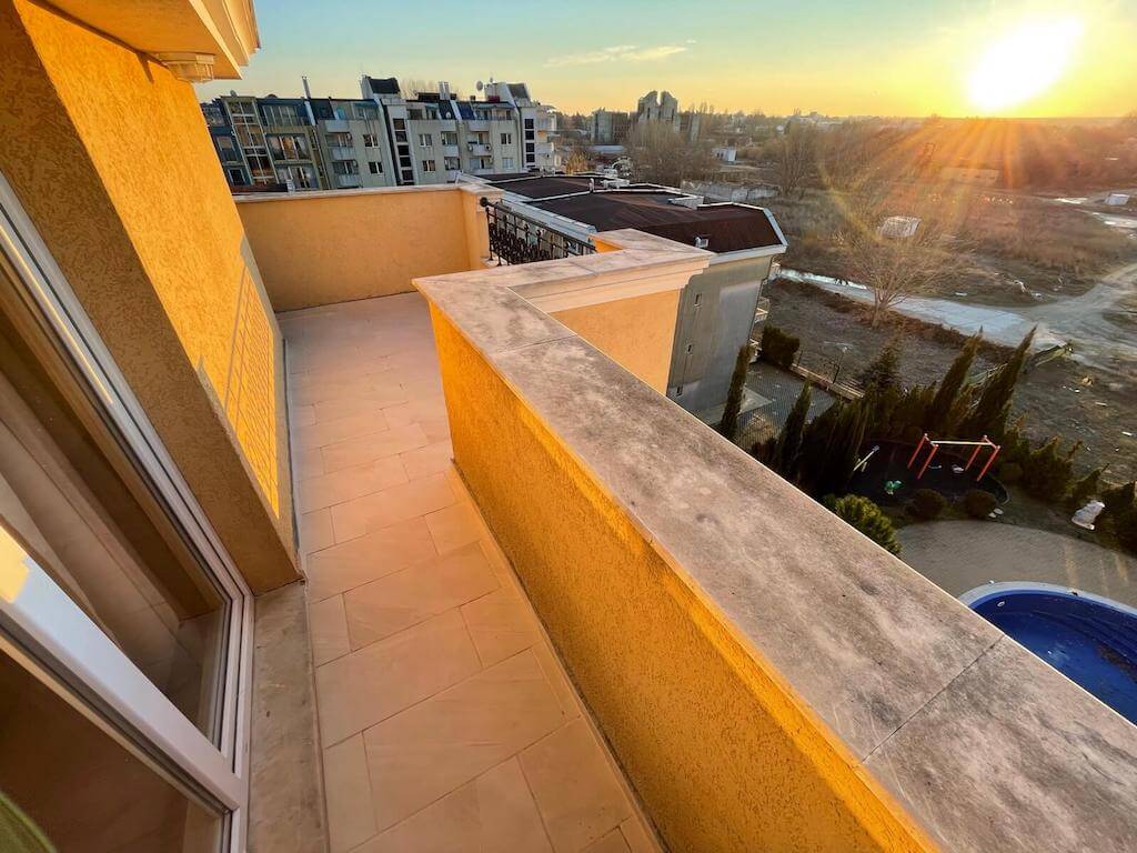 Новое предложение в Солнечном береге - трехкомнатная квартира на шестом этаже жилого комплекса закрытого типа «Мессембрия Палас»! В квартире сделан косметический ремонт, она продается полностью меблированная и с уже установленной техникой. Общая площадь жилья составляет 73 кв.м. «Месембрия Палас» - является частью мини-курорта «Месембрия Резорт», в непосредственной близости от самого известного пляжа «Какао». Комплекс предлагает разнообразные услуги и развлечения. На богато озелененной территории есть рестораны, караоке-бар, большой открытый бассейн, аквапарк, крытый бассейн, СПА-центр, тренажерный зал, салон красоты и многое другое. Для малышей предусмотрен отдельный бассейн и игровая площадка. Несебр находится всего в 10 минутах ходьбы, до центра Солнечного берега можно доехать за 5 минут. До пляжа тоже можно добраться пешком за несколько минут. Комплекс работает круглогодично и находится под постоянной охраной. Такса обслуживания – 10 евро/кв.м.