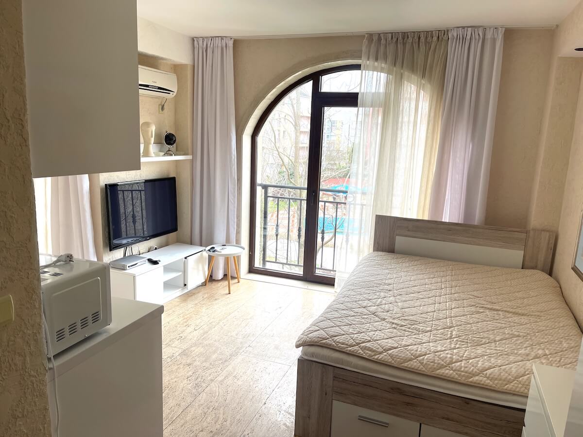 Прекрасная новинка на Солнечном береге! К продаже предлагается хорошо меблированная и укомплектованная техникой квартира - студия в комплексе «Амара» Квартира общей площадью 31 кв.м. расположена на третьем этаже (есть лифт) здания. Комплекс «Амара» построен в тихом и уютном районе курорта и пользуется большой популярностью среди туристов. Стильная архитектура, высокое качество строительства, плавательный бассейн, бар, магазин продуктов, охрана, паркинг