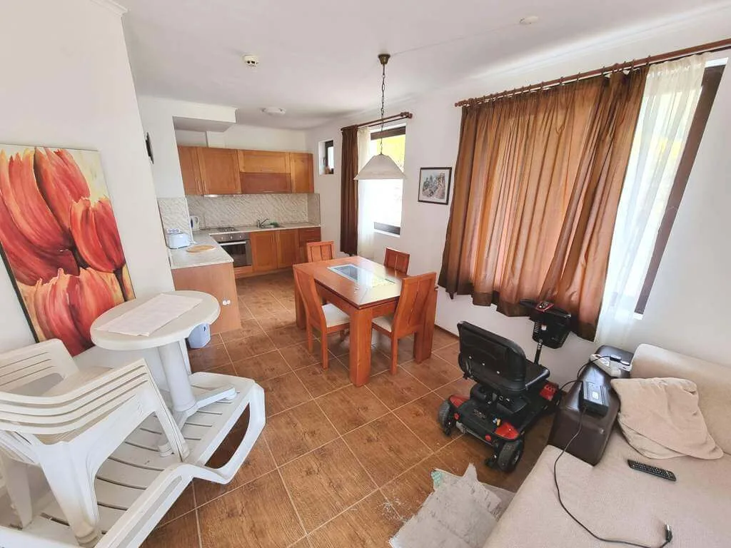 Новое предложение в Кошарице от АН Lev & Mar Group! Хорошо меблированный трехкомнатный апартамент, расположенный в эко-комплексе Бэй Вью Виллас, уже готов к продаже! Общая площадь жилья составляет – 99 кв. м, в планировку включено терраса с выходом на свой дворик, три полноценных санузла, гостиная с эркерными окнами и две спальни. Квартира занимает весь первый этаж трехэтажного дома. Бэй Вью Виллас – это комплекс невероятно красивых вилл, который построен на возвышении – одном из зеленых холмов Балканских гор в Кошарице, в трех километрах от Солнечного берега с аквапарком и различными развлечениями. К услугам собственников великолепный ресторан с национальным меню, бар с коктейльной и закусочной картой, а также бильярдная и вечерняя развлекательная программа. В комплексе построен центр красоты и оздоровления, есть фитнес-зал, поле для мини-гольфа и крупный игровой клуб для малышей с аниматорами и воспитателями. До побережья – чуть более четырех километров.