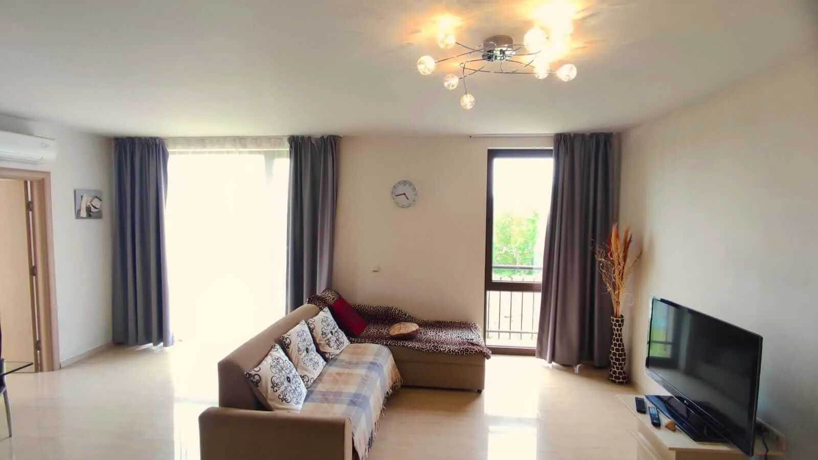 Новое предложение в Солнечном береге пополнило каталог обьектов предлагаемых к перепродаже АН Lev & Mar Group! Предлагается Вашему вниманию двухкомнатная квартира в одном из самых востребованных комплексов у покупателей курортной недвижимости комплексе «Тарсис» ,построенном в 600 м от моря. На территории есть два бассейна, пиано-бар, ресторан, диско-клуб, супермаркет, салон красоты, рецепция, парковка, детская площадка с горками и качелями. Апартамент расположен на четвертом этаже с одной из террас открывается вид на бассейн и территорию комплекса. Апартамент достаточно просторный его общая площадь 74 кв.м. Полностью обставлен мебелью и бытовой техникой. Прекрасно подойдет для сезонной сдачи в аренду или летнего отпуска.