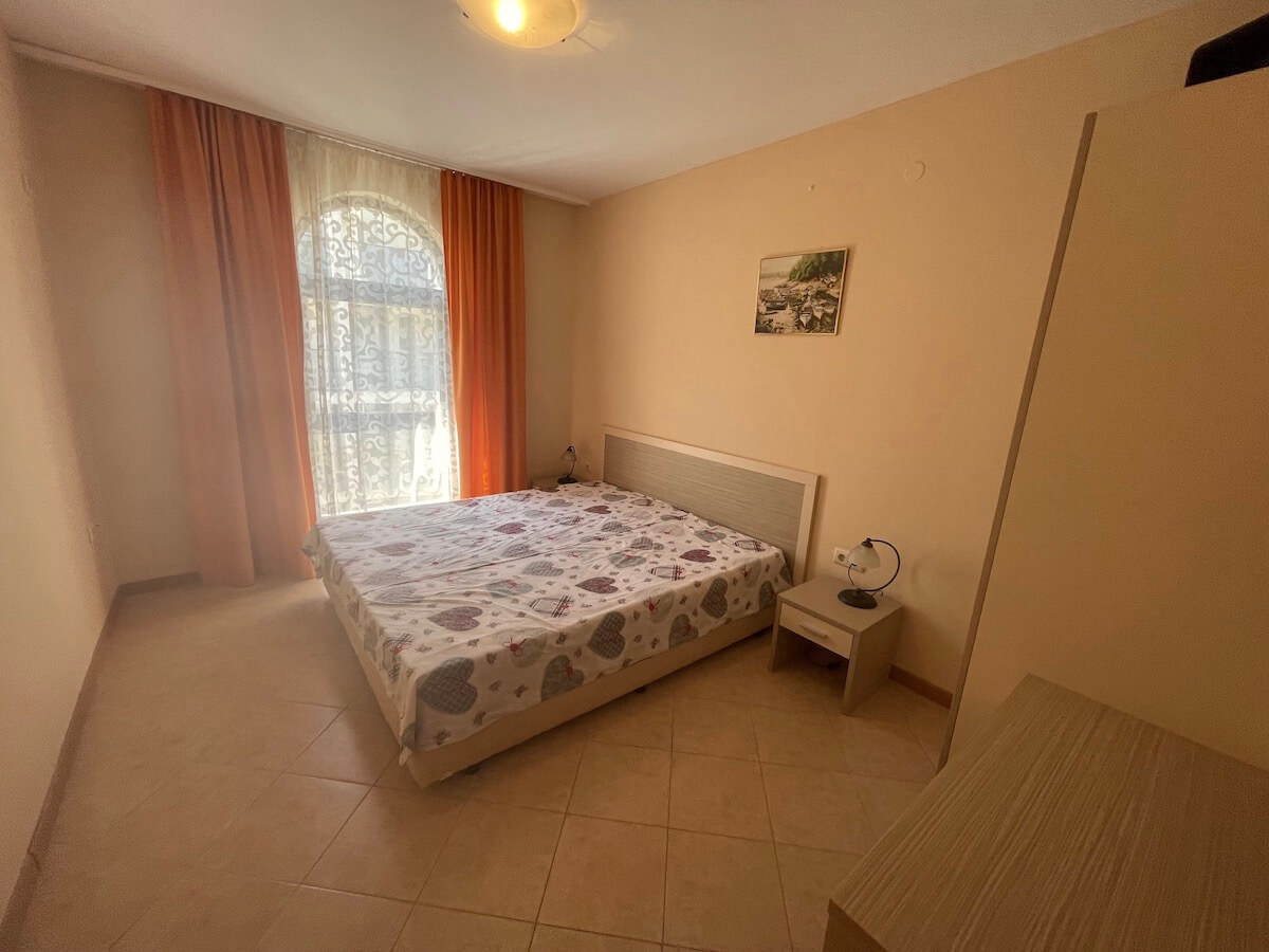 Предлагаем к приобретению двухкомнатную квартиру в прекрасном комплексе "Роял Сан" на второй береговой линии в к.к. Солнечный берег. В непосредственной близости - автобусная остановка и супермаркет «Магнит». Красивый комплекс с запоминающейся архитектурой расположен в очень коммуникативном районе. Апартамент полностью меблирован, чистый и в хорошем состоянии. Путь до пляжа - не более 7-10 минут прогулки, до центра - не более 15 минут. Общая площадь жилья составляет – 60 кв.м., пятый этаж. Комплекс является одним из самых больших и популярных в Солнечном береге. Летом здесь всегда много туристов, возможна сдача квартиры в аренду управляющей компанией. Вас порадует разнообразие услуг: огромный бассейн с шезлонгами, детский бассейн, ресторан, СПА, лобби-бар, медицинский кабинет, рецепция и др.