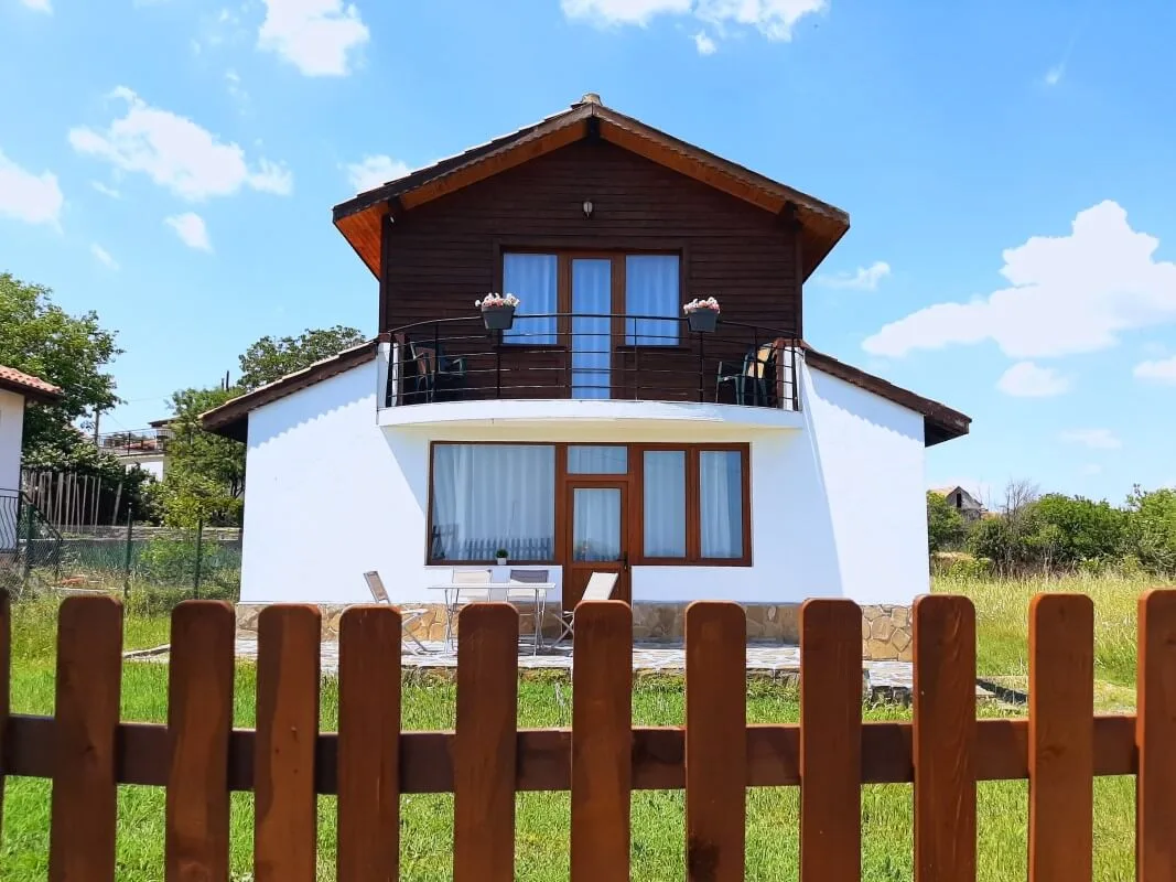 Внимание, новинка! АН Lev & Mar Group предлагает на продажу самостоятельный автономный двухэтажный дом в селе Александрово, расположенный в десяти километрах от побережья Солнечного Берега. Недвижимость находится на огороженном земельном участке площадью 809 кв. м. Полное благоустройство и оснащение: продажа осуществляется с мебелью и техникой. Во дворе – садовые деревья и кустарники. Подходит для круглогодичного проживания. Площадь – 129 кв. м. Предлагаемый нами дом имеет площадь 129 квадратных метров, построен на двух этажах, с просторными комнатами и функциональным распределением пространства. Переходных комнат нет - из парадной входишь в коридор на первом этаже; гостиная, столовая и кухня находятся в одном общем просторном помещении с высокими потолками и местом для камина; отдельная спальня, ванная с туалетом, прачечная, гардеробная. Гостиная выходит на просторную веранду с видом на Балканские горы и залив Солнечного Берега. Из гостиной внутренняя лестница ведет на второй этаж, где есть две спальни, ванная комната с туалетом и две террасы. Дом построен из высококачественных материалов, спроектирован по западноевропейским стандартам, с прочным фундаментом, внешней и внутренней изоляцией .Александрово – развитое село с магазинами, множество людей проживает круглогодично. До оживленных курортов ходит транспорт