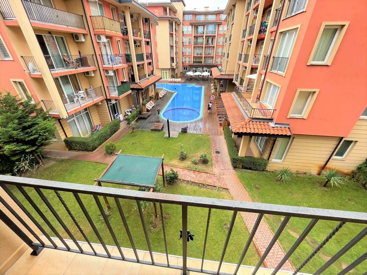 И вновь мы готовы порадовать клиентов АН Lev & Mar Group нашим новым , эксклюзивным предложением в ЖК Санни Вью Централ по отличной цене! На третьем этаже комплекса предлагается к продаже апартамент площадью 33 кв. м. – меблированный, оснащенный техникой, уютный и комфортабельный. Посмотрите на фото – и удобный интерьер, и балкон, выходящий на территорию комплекса и бассейн, и обустроенный санузел – жилье отлично подготовлено к продаже и заселению. Название комплекса Санни Вью Централ характеризует расположение этого ЖК – он находится практически в центральном квартале Солнечного берега, в полукилометре от моря. Уютный, с хорошей инфраструктурой. В нем можно отдохнуть у бассейна и в баре, воспользоваться паркингом, посетить торговые площади и многое другое