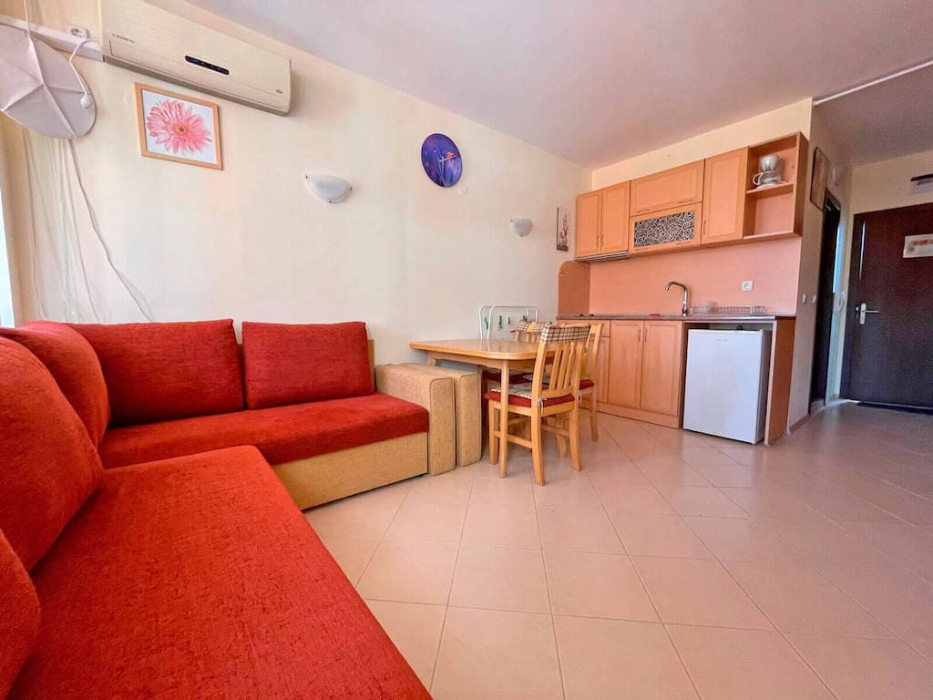 Эксклюзивное предложение от нашего агентства на Солнечном берегу! К продаже предлагается квартира - студия в 450 метрах от моря. Апартамент с минимально необходимым набором мебели и бытовой техники в жилом комплексе Сансет Бич 3. Планировкой квартиры предусмотрен балкон с которого открывается вид на бассейн, встроенная кухня с обеденной зоной. Санузел с установленной душевой кабиной, а также кондиционер. В здании установлен лифт, квартира располагается на пятом этаже. Для удобства жильцов на территории Сансет Бич 3 создан тот спектр удобств, который позволит чувствовать себя комфортно и детям, и взрослым. Построен большой бассейн с детским отсеком, в зоне отдыха – коктейльный бар, автомобиль можно оставить на парковке. В этом комплексе круглогодичное обслуживание, доступ на территорию закрытого типа. В шести минутах популярный пляж с развлечениями