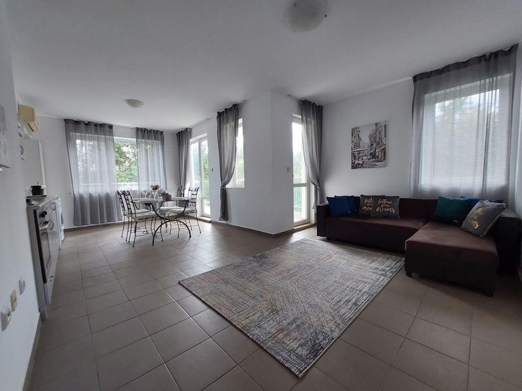 В прекрасном курортном комплексе Сарафово Резиденс к продаже предлагается просторный трехкомнатный апартамент. Это – меблированная и комфортабельная квартира с двумя полноценными санузлами и двумя террасами на третьем этаже, ее общая площадь – 110 кв. м. Жилье переходит во владение новых собственников в актуальном состоянии. ЖК Сарафово Резиденс расположен в престижном районе одноименного курортного города, в трехстах метрах от моря. Это крупный, с интересной архитектурой и «полноразмерным» спектром удобств отель, предназначенный для ПМЖ или сезонного проживания. Открытый и подземный паркинги, мини-гольф, сауна, фитнес, бассейны, массажный центр и магазин составляют внутреннюю инфраструктуру. Рядом крупный спортивный зал, игровой центр для детей и боулинг