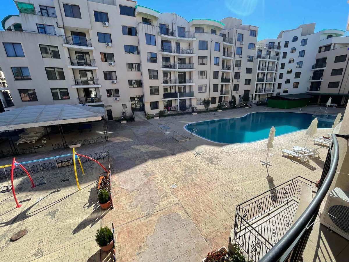 Вниманию покупателей! Новое, эксклюзивное предложение от АН Lev & Mar Group на Солнечном берегу! К продаже предлагается отличная двухкомнатная квартира в отеле Авалон, на Солнечном берегу. Квартира находится на втором этаже в здании с лифтом, ее общая площадь – 65 кв. м. Сделан косметический ремонт, в каждой комнате установлена хорошая мебель и современная техника, есть открытый балкон с видом на бассейн и территорию отеля. Расположенный в 350 метрах от моря и пляжа, апарт-отель предлагает собственникам множество локаций для отдыха и удобств. Коктейльный бар у открытого бассейна, ресторан с традиционным меню и шведским столом, детская площадка и организация развлекательных мероприятий делают это место идеальным для досуга всей семьи.